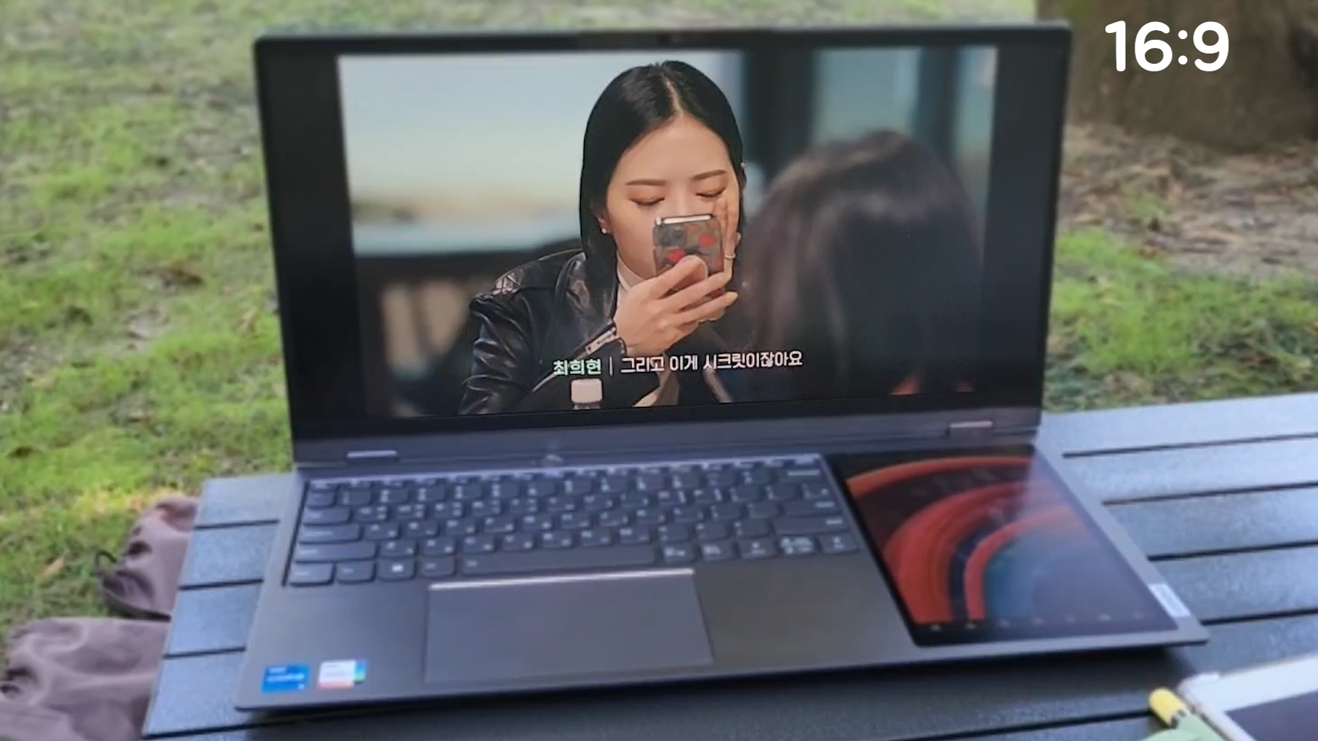 이 노트북 같은 경우는 16:9 비율의 그런 영상을 볼 때는 이 정도입니다.