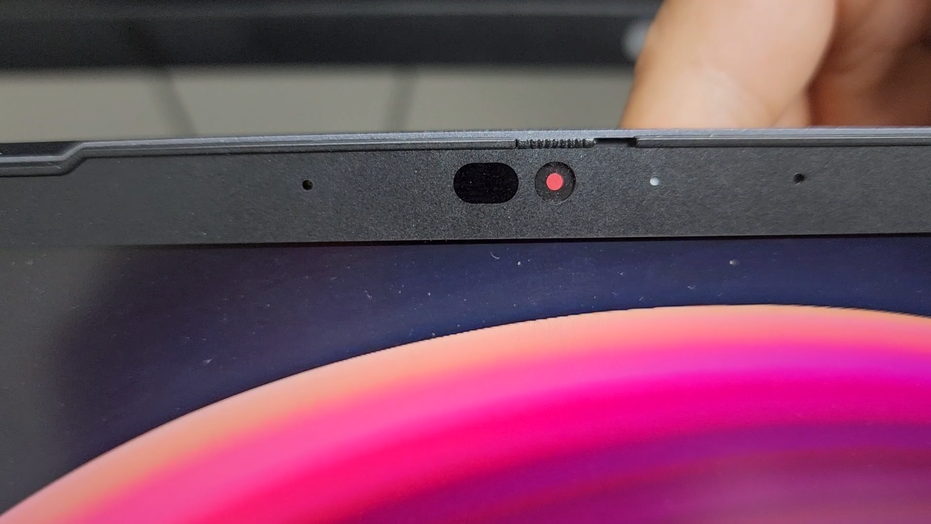 위쪽에 FHD 웹 캠 프라이버시 셔터 카메라입니다. 사용 안 할 때는 닫아 두면 됩니다.