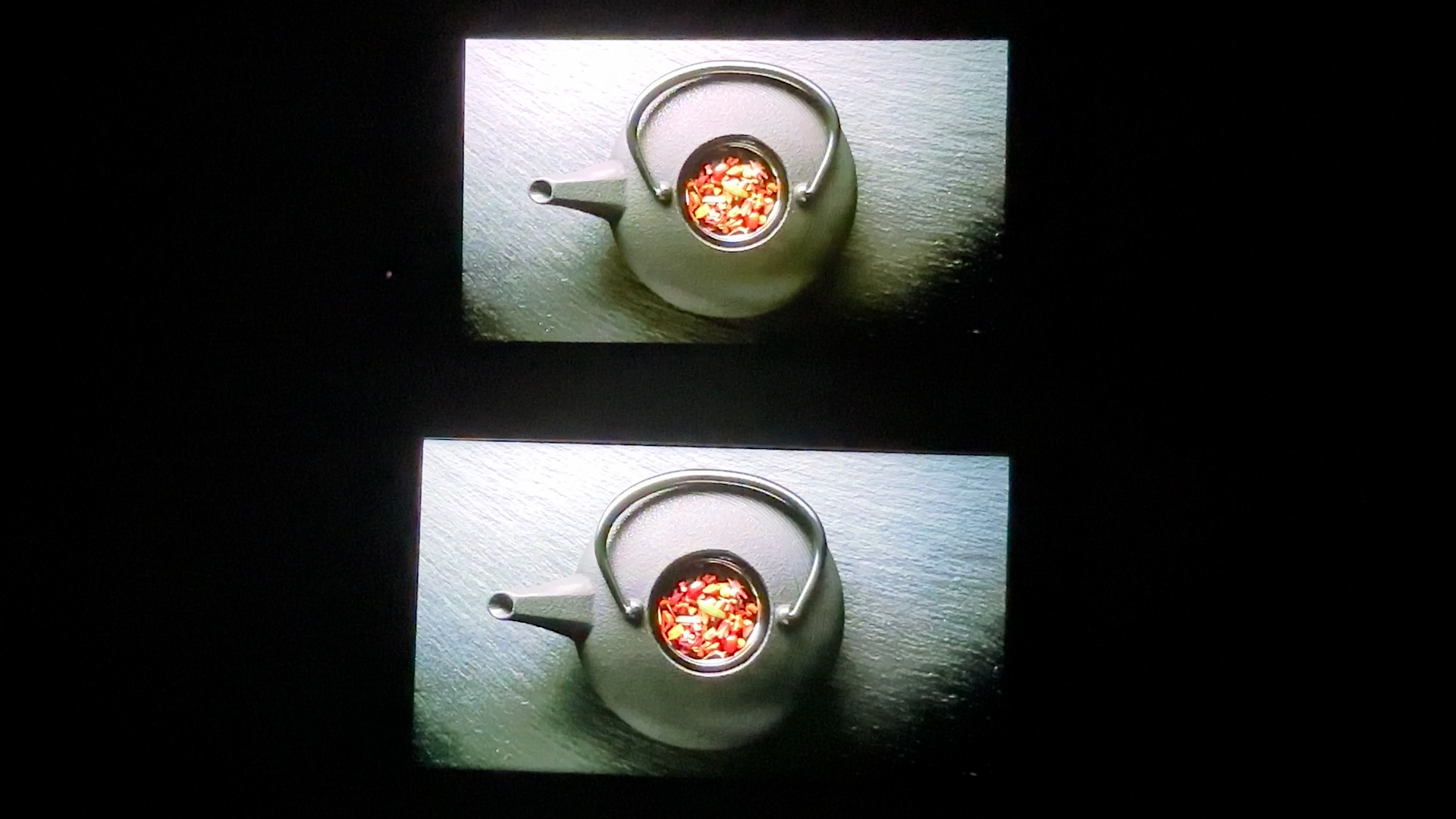 위쪽 엣지30은 2400x1080 해상도, 아래쪽 갤럭시 S22 울트라는 3088×1440 해상도입니다. 둘 다 OLED 디스플레이입니다.