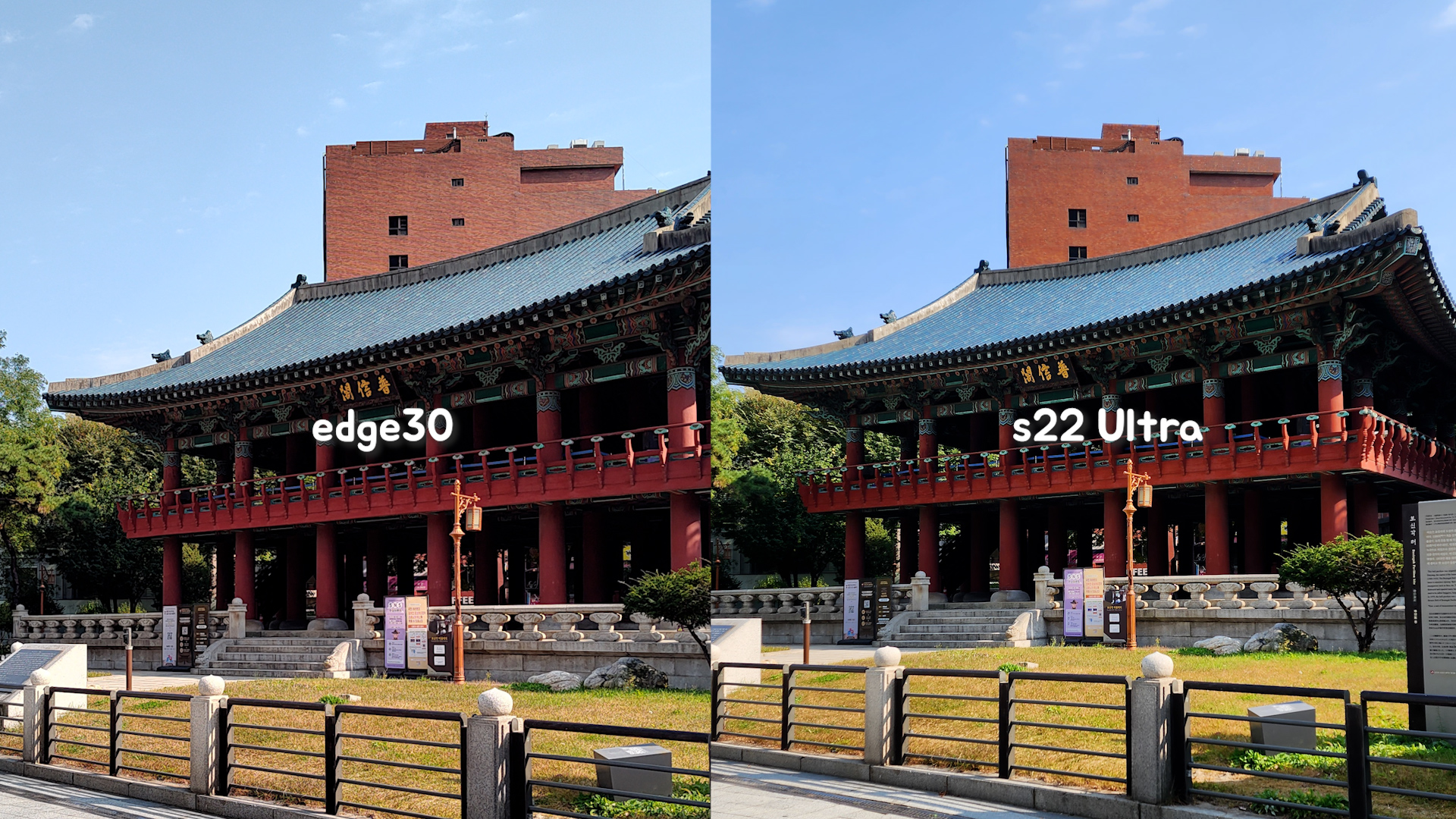 카메라를 보면 갤럭시 S22 울트라는 108MP 메인 카메라, 모토로라 엣지30은 50MP 메인 카메라를 사용하는데요