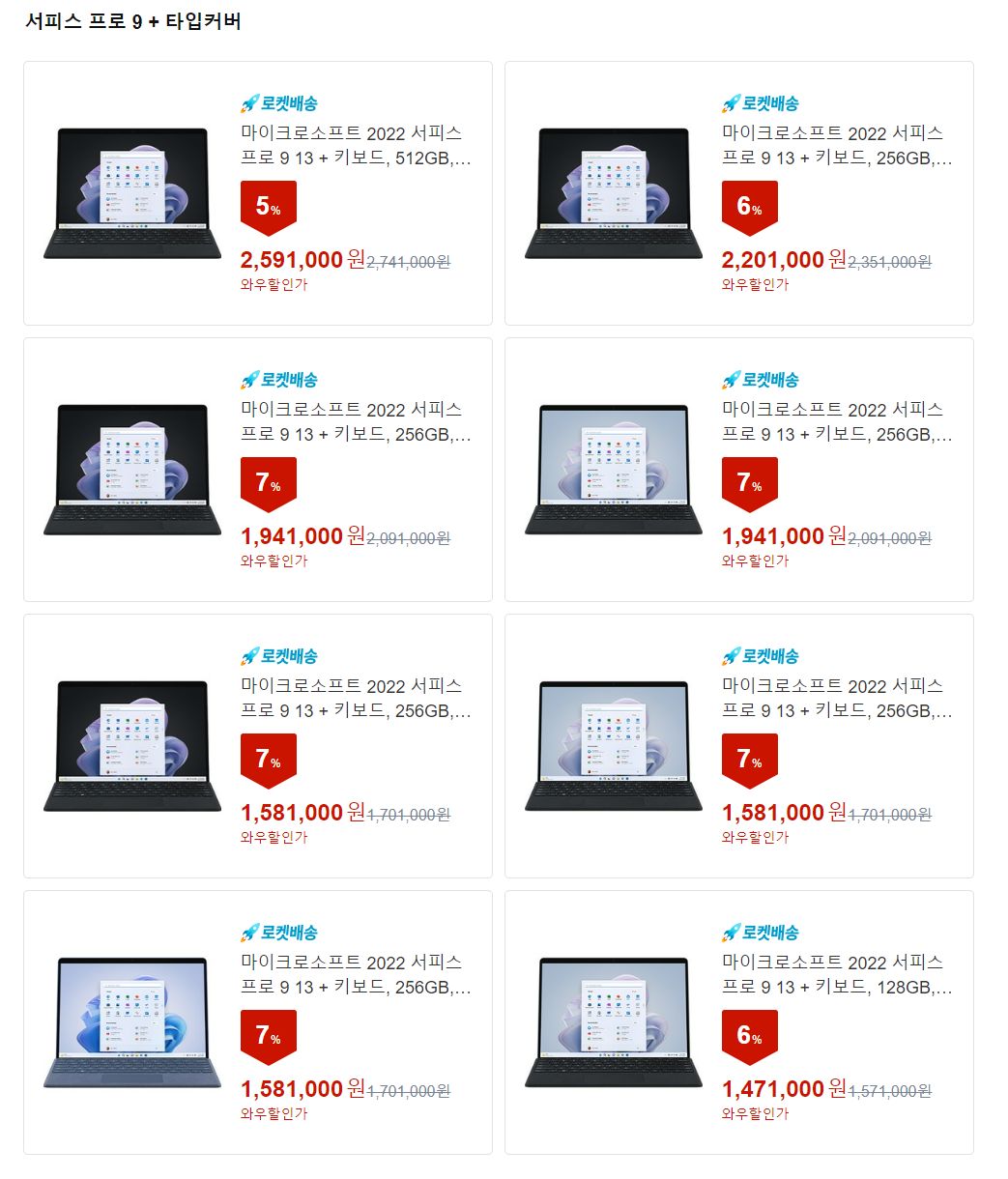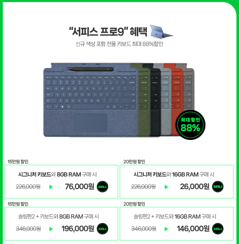 그리고 서피스 프로 9에 키보드 세트만 판매하는 것도 있고요