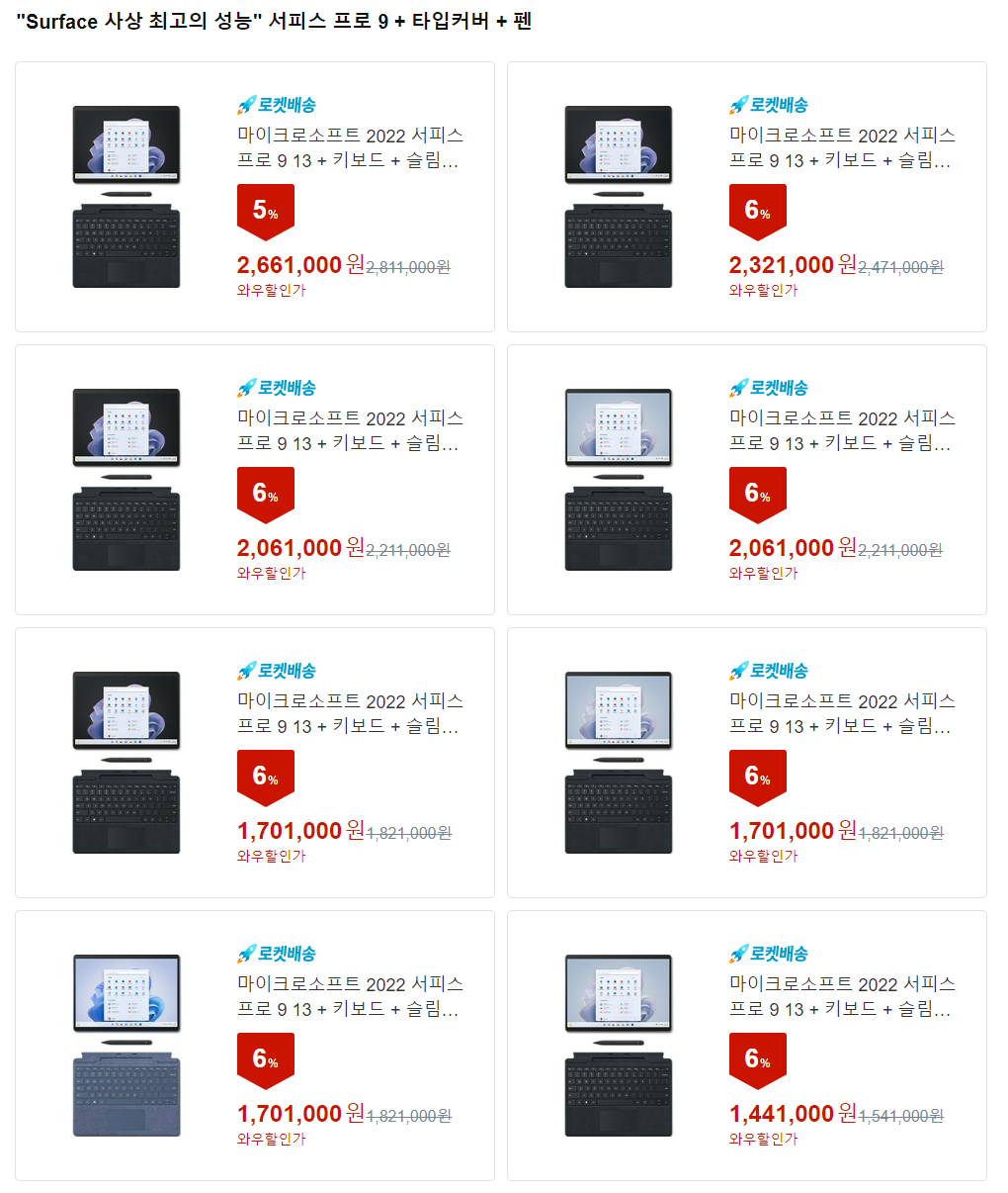 쿠팡은 서피스 프로 9에 키보드와 슬림펜 2를 세트로 판매하고 있습니다.