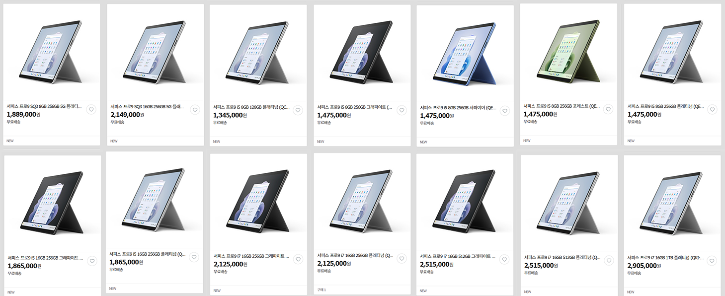 그리고 서피스 프로9 i7 16GB 1TB 모델도 없습니다.