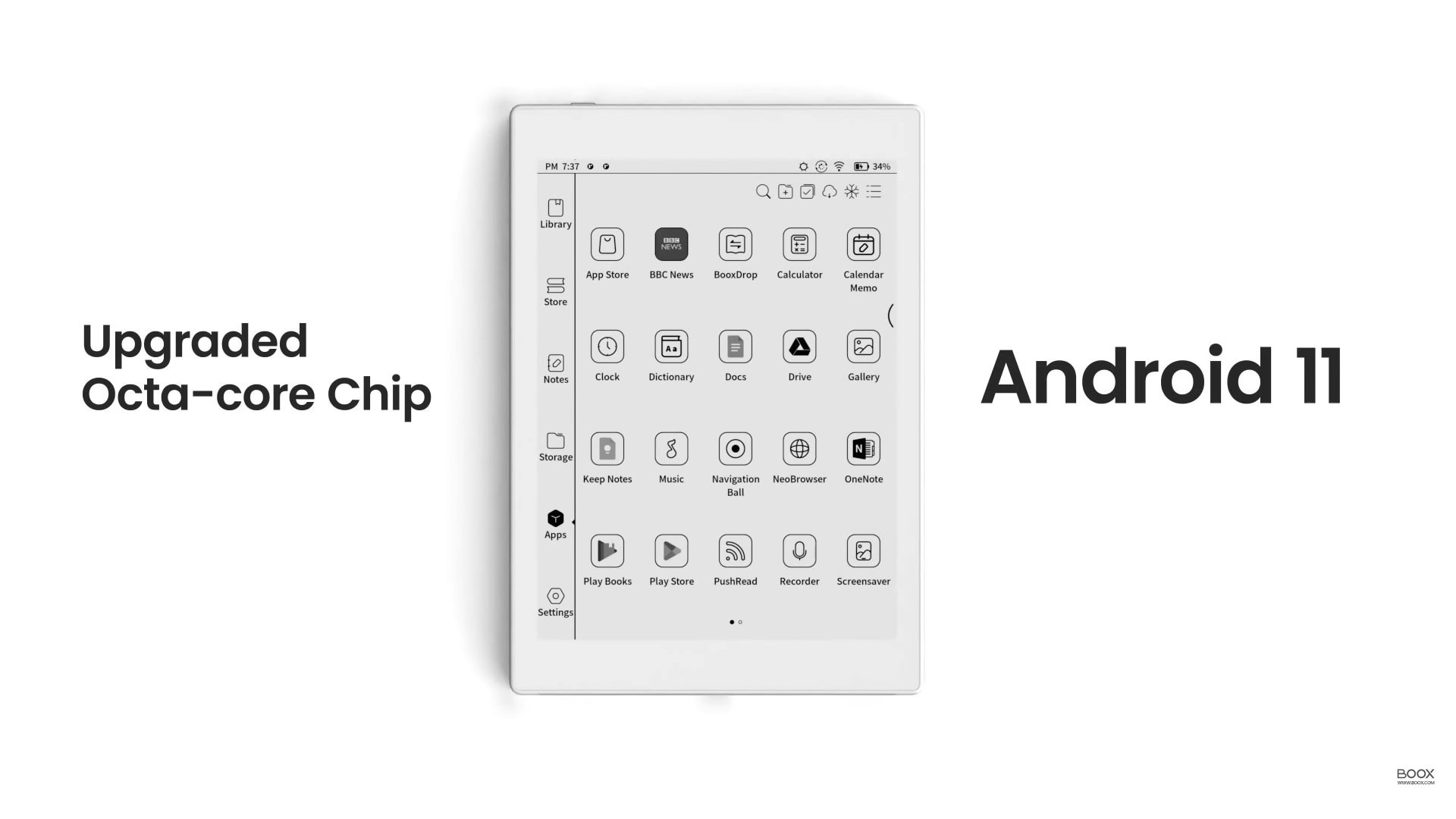 300dpi 고해상도 제품이고, 2GB RAM, 32GB ROM에 Android 11을 사용하고 있습니다.