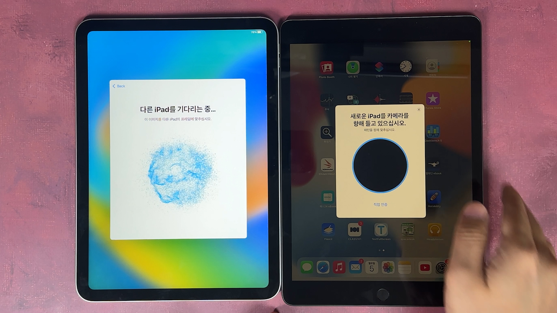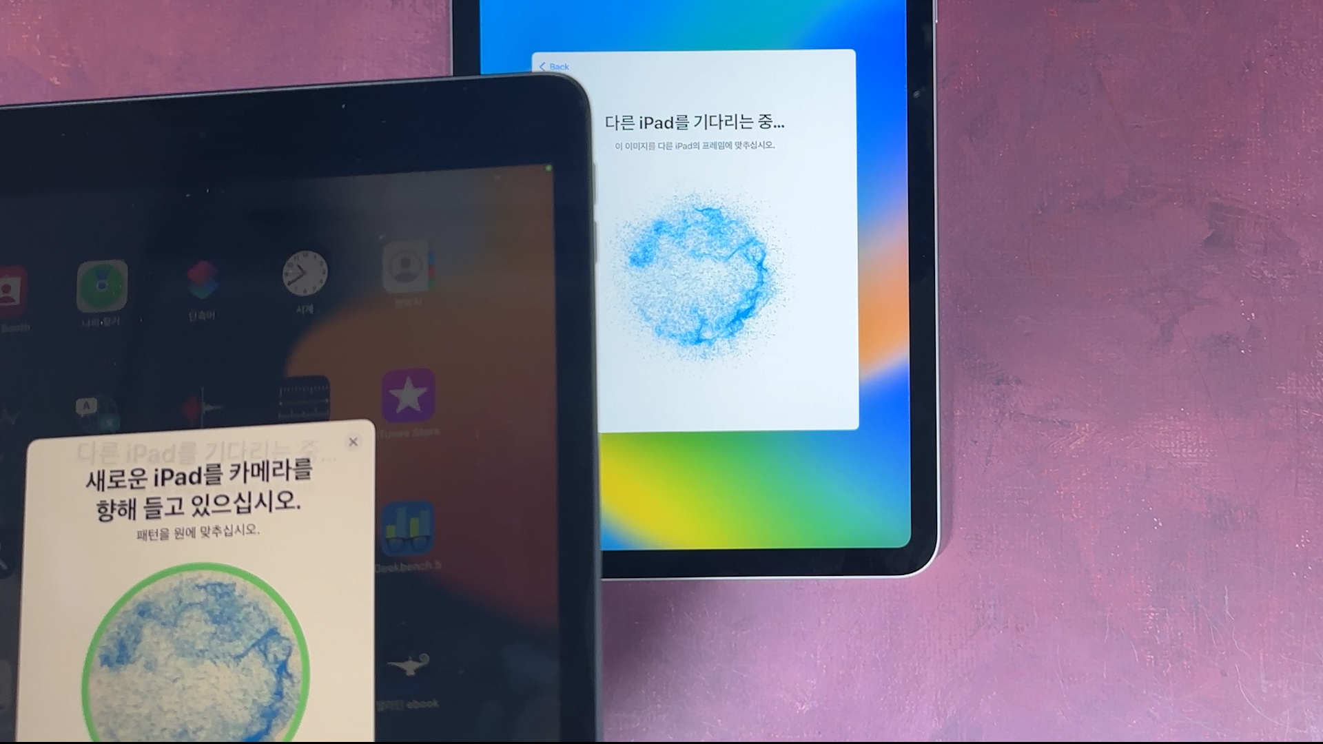 그럼 다른 iPad를 기다리는 중 나오면서 이 원안에 다른 iPad의 동그란 원을 담아주세요