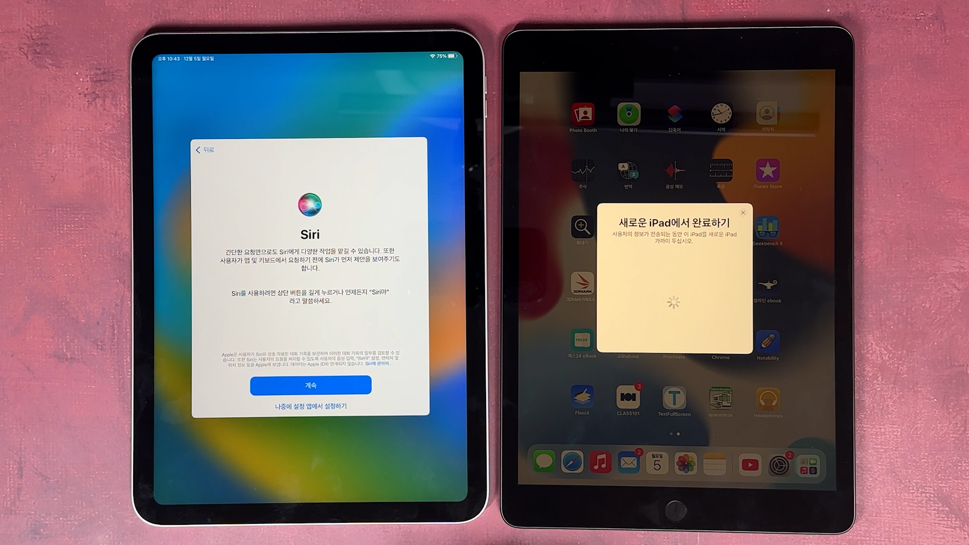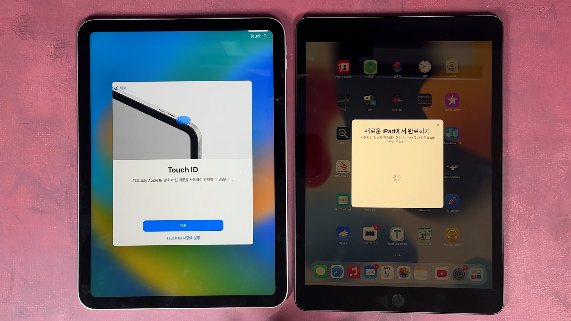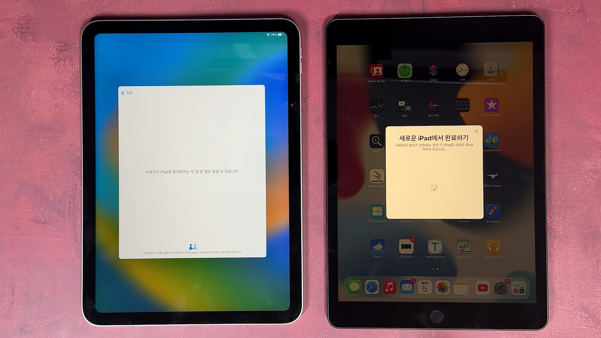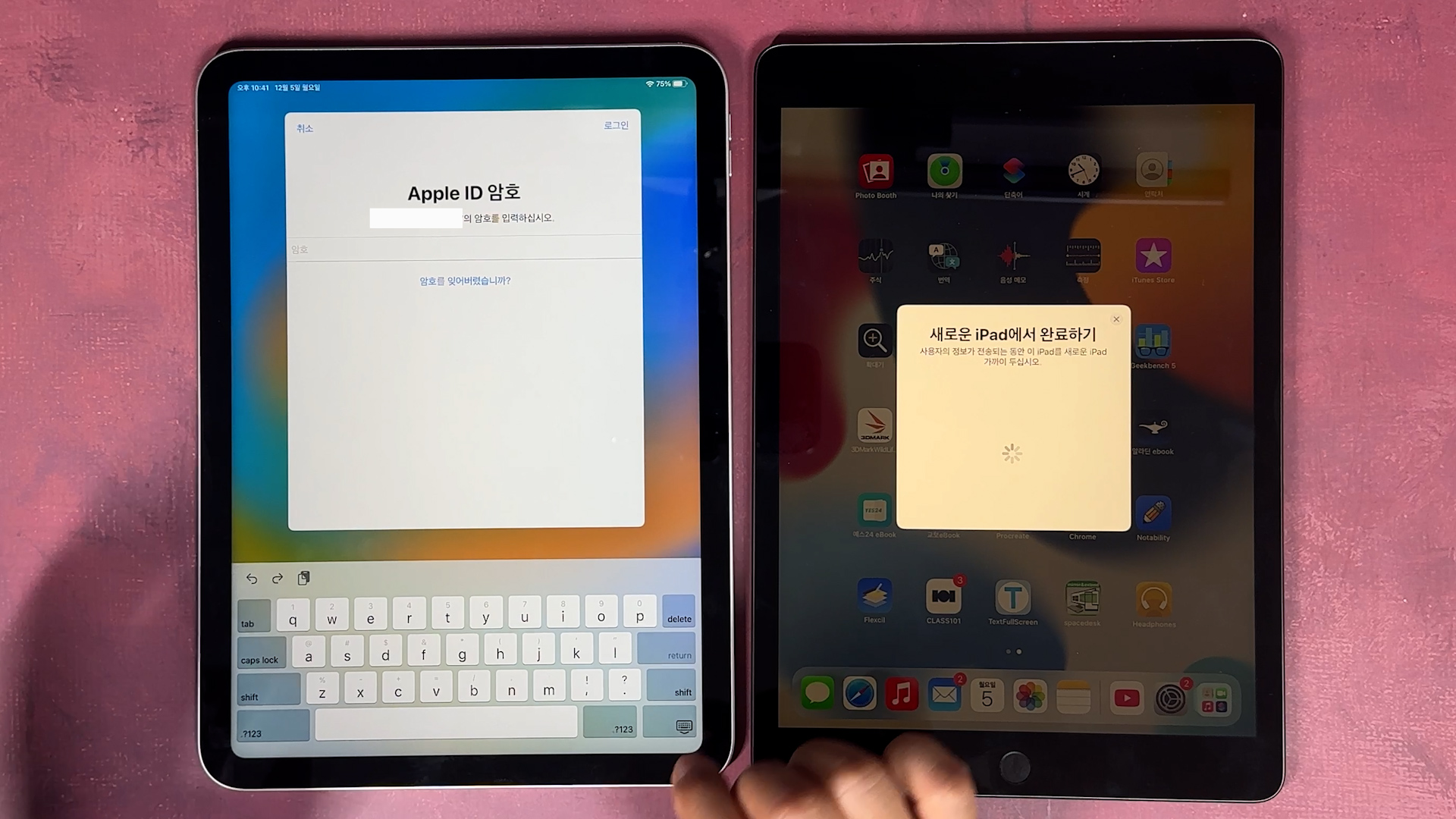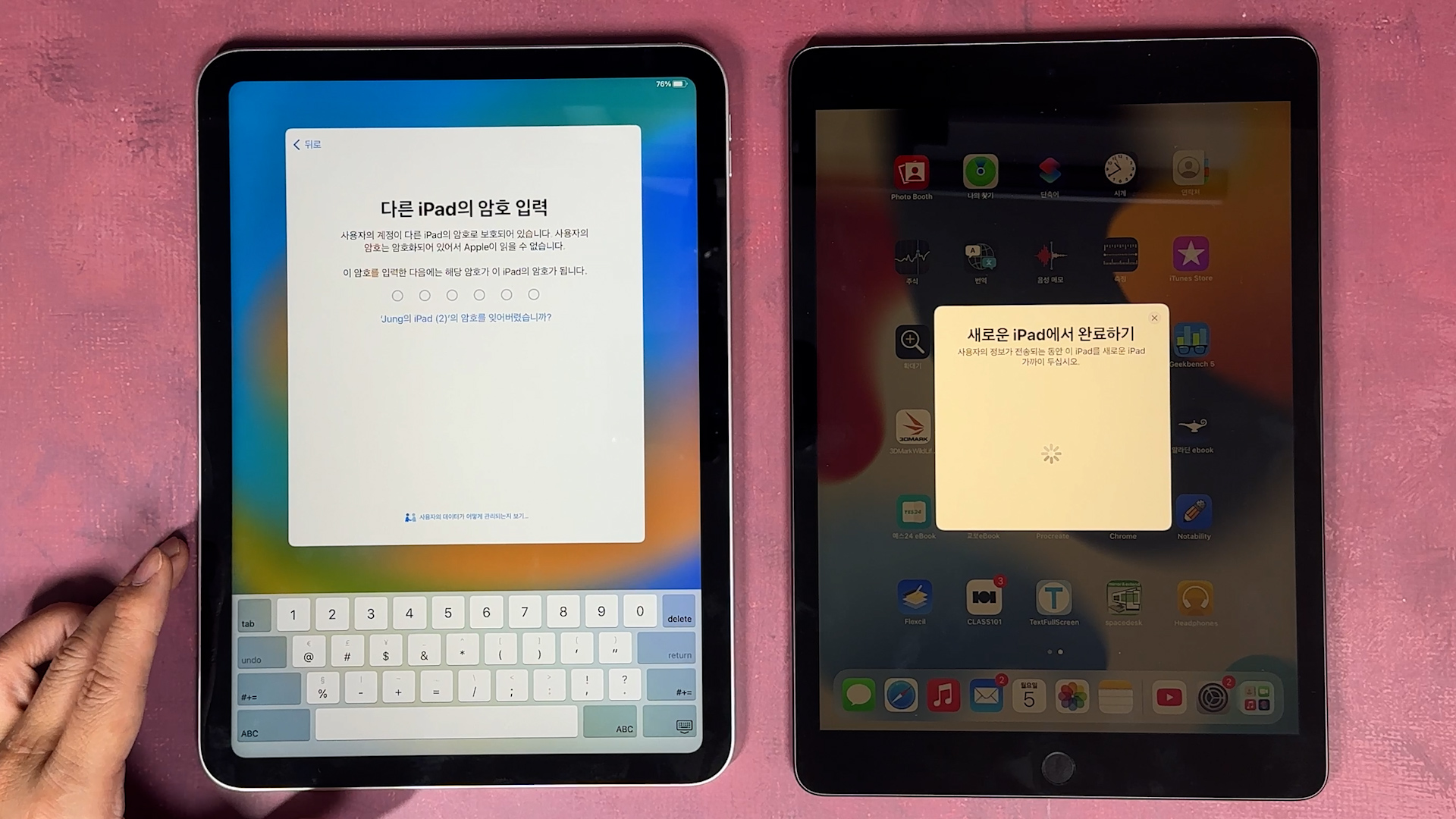 iPad로 데이터 전송 나오고 그 다음에 기존에 있던 iPad에 있는 데이터를 iPad 10세대로 전송이 완료되면 끝납니다.
