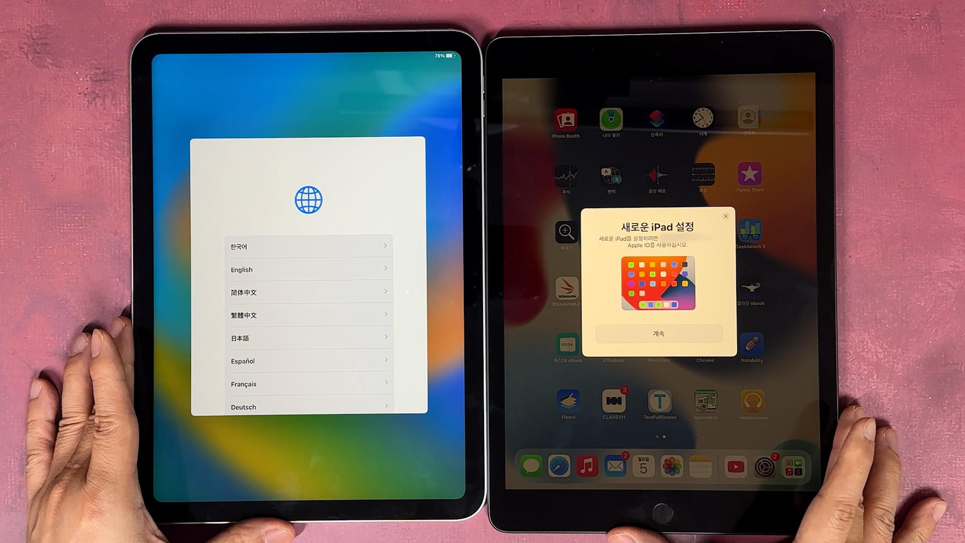 새로운 iPad로 설정이 나왔습니다. 계속 선택해 주세요