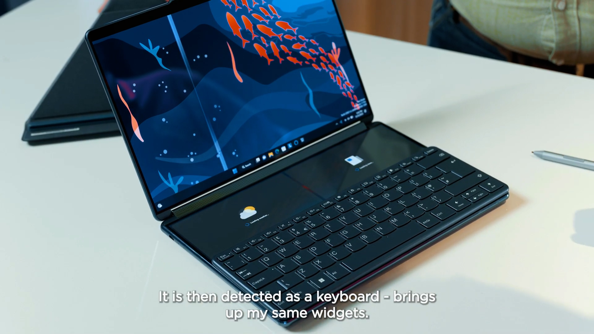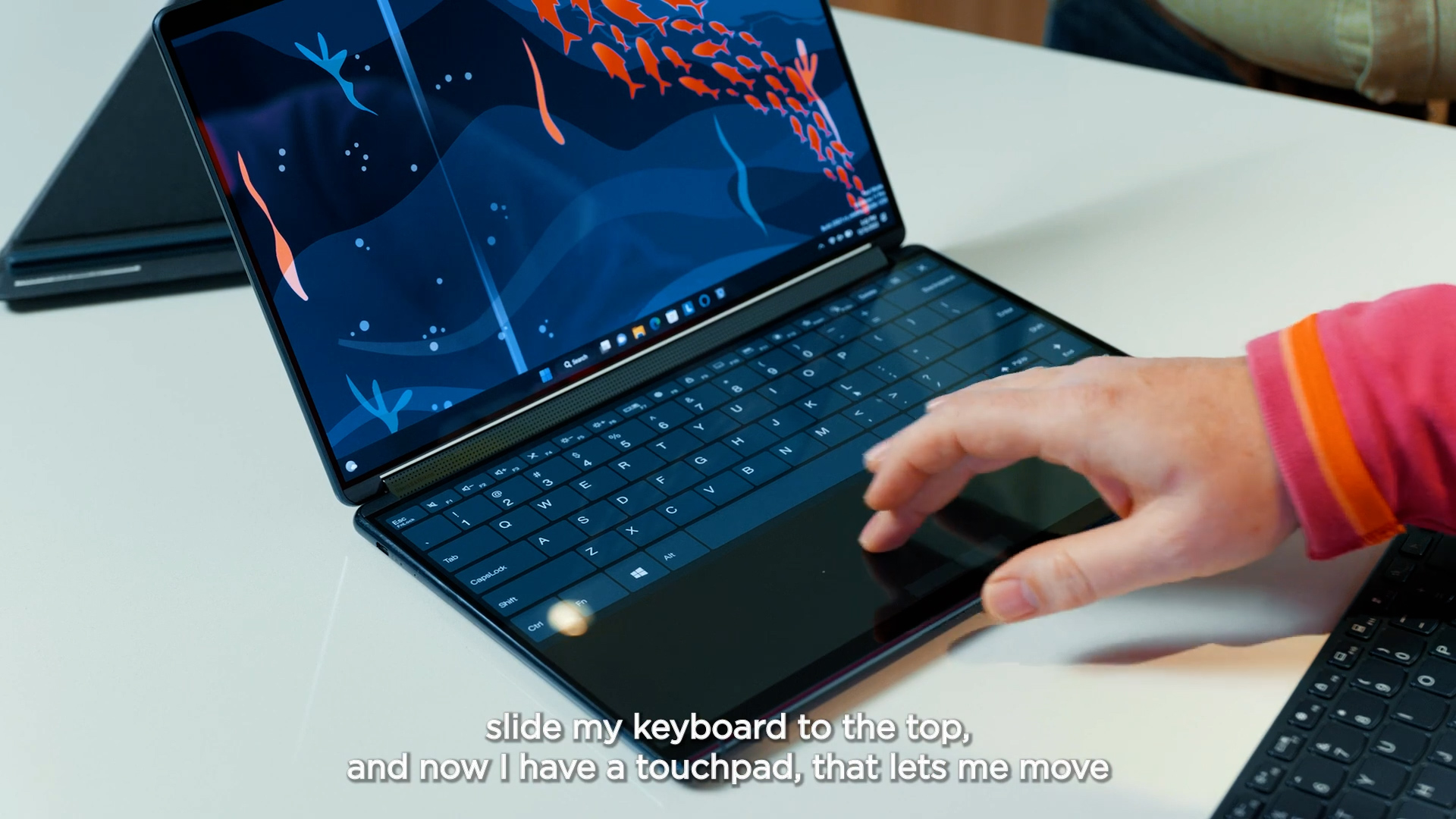 노트북 모드로 사용할때는 하단 디스플레이를 터치 키보드로 사용할 수도 있습니다.