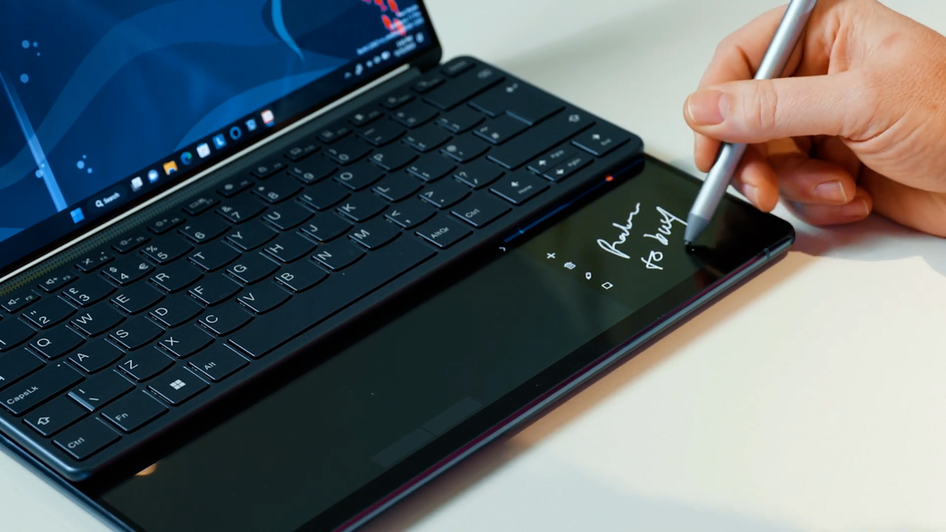 물리적 키보드를 도킹한 상태에서도 액티브 펜슬로 메모할 수 있습니다. 씽크패드 제품이 아니기 때문에 빨콩으로 불리는 트랙 포인트는 없습니다.