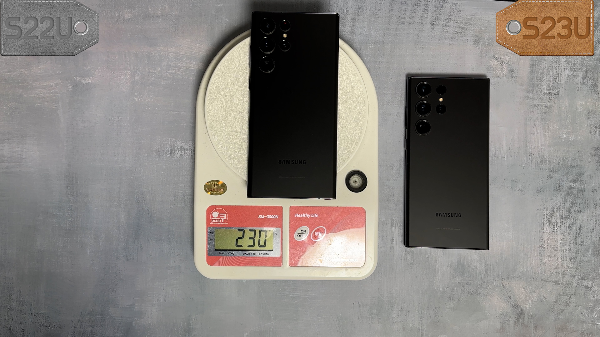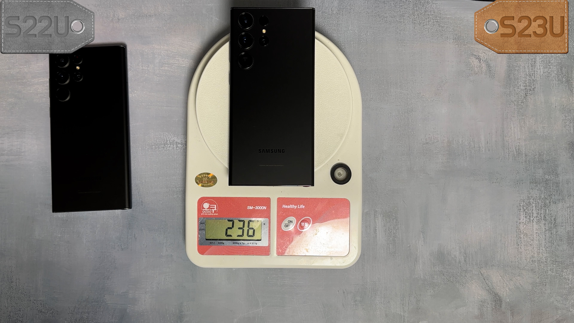 두 제품은 6.8인치인데 무게는 S22U 230g, S23U 236g입니다.