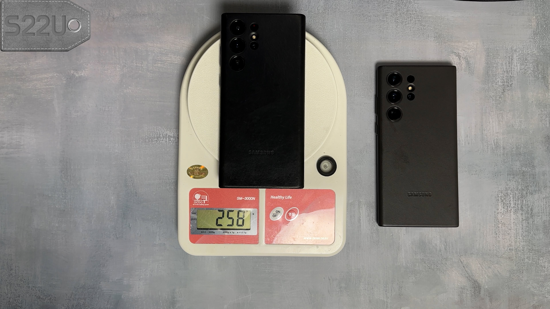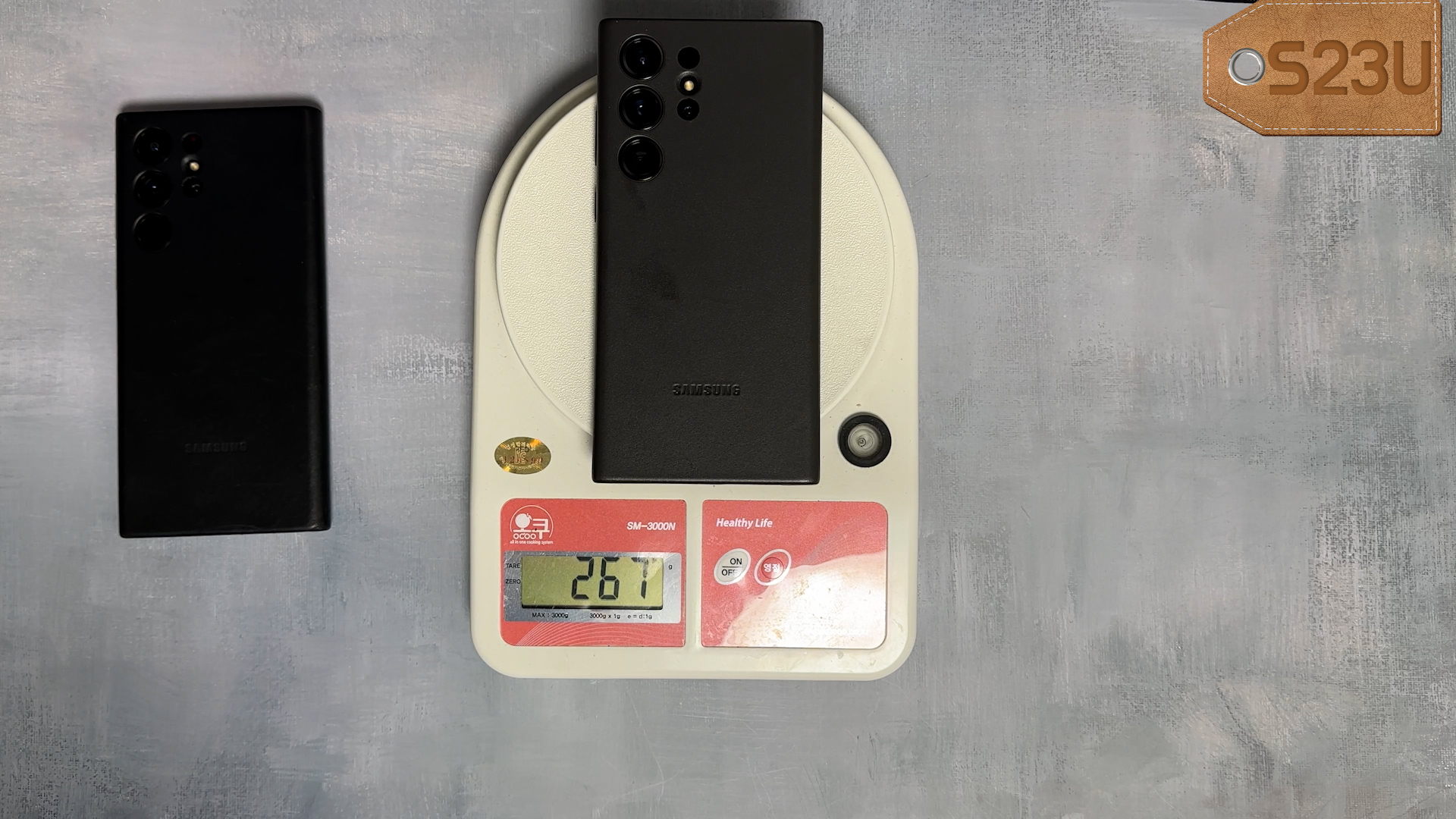 정품 레더 케이스를 착용하면 S22U 258g, S23U 267g입니다.