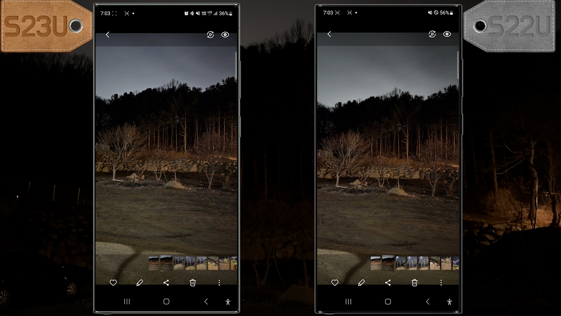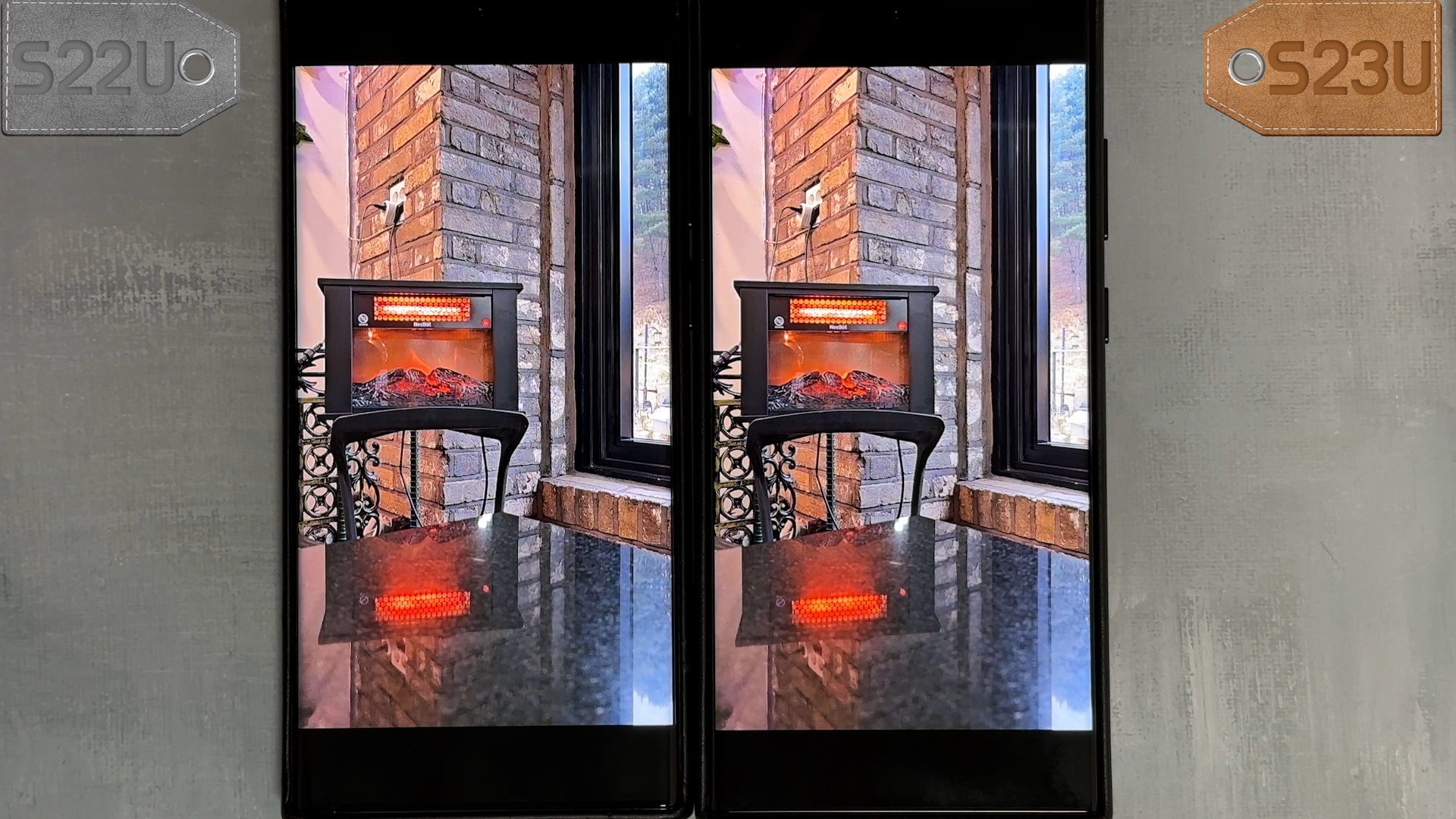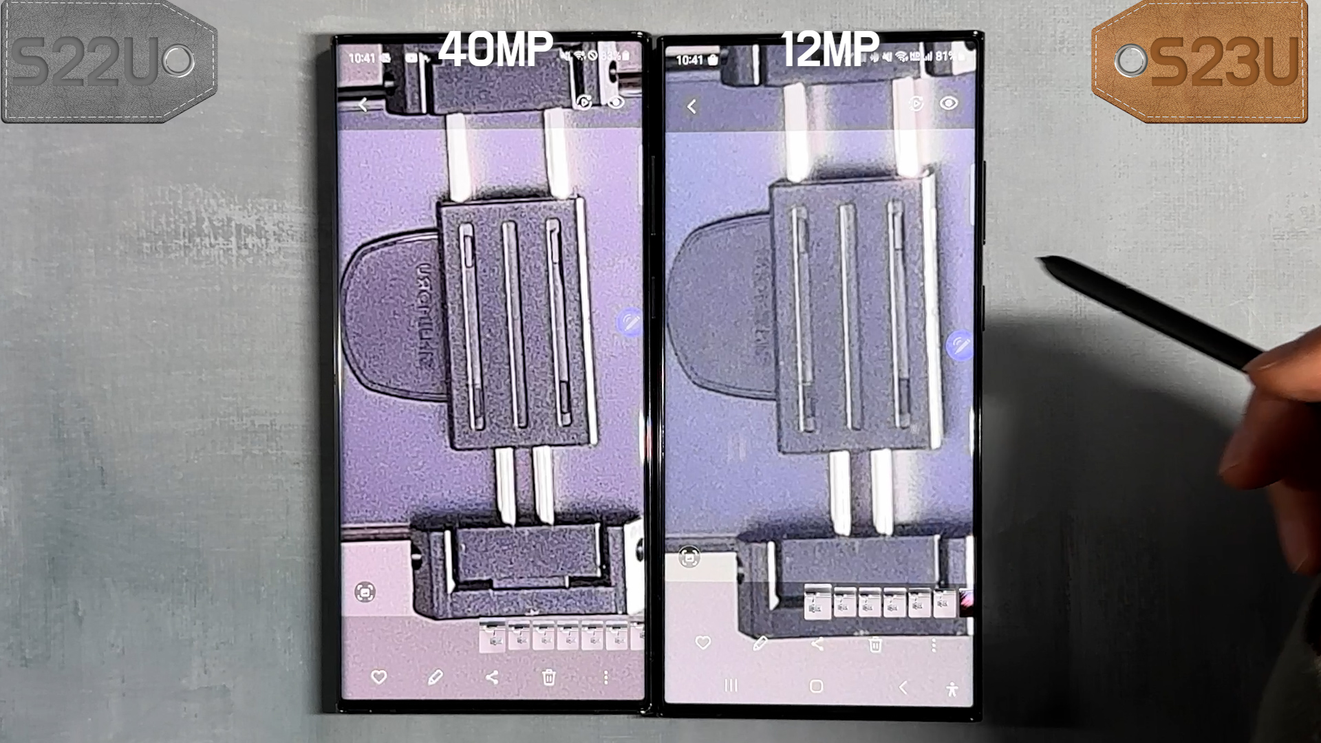 둘다 촬영하고 확대해 보니 S23U 촬영 결과물이 만족스럽지 않네요 어두운 환경에서 소프트웨어 보정 문제가 있어 보입니다.