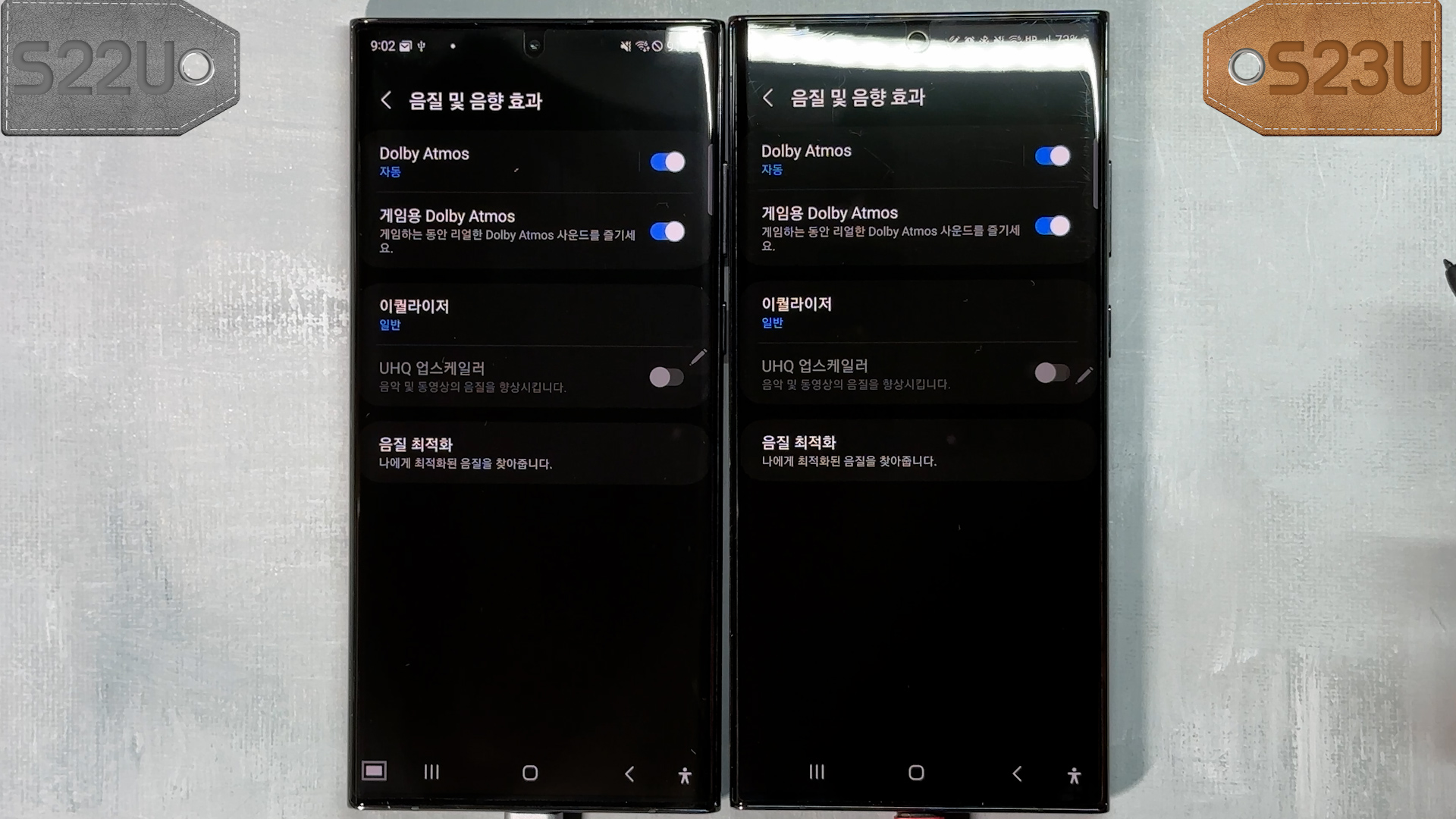 이번에는 디스플레이 차이를 비교해 보기 위해서 최대 밝기에 화면 설정은 자연스러운 화면으로 선택하고 S23U에서 촬영한 파일을 S22U에 복사해서 똑같이 재생을 시켜 봤습니다. 이렇게 비교해도 S23U 영상이 더 선명하죠?