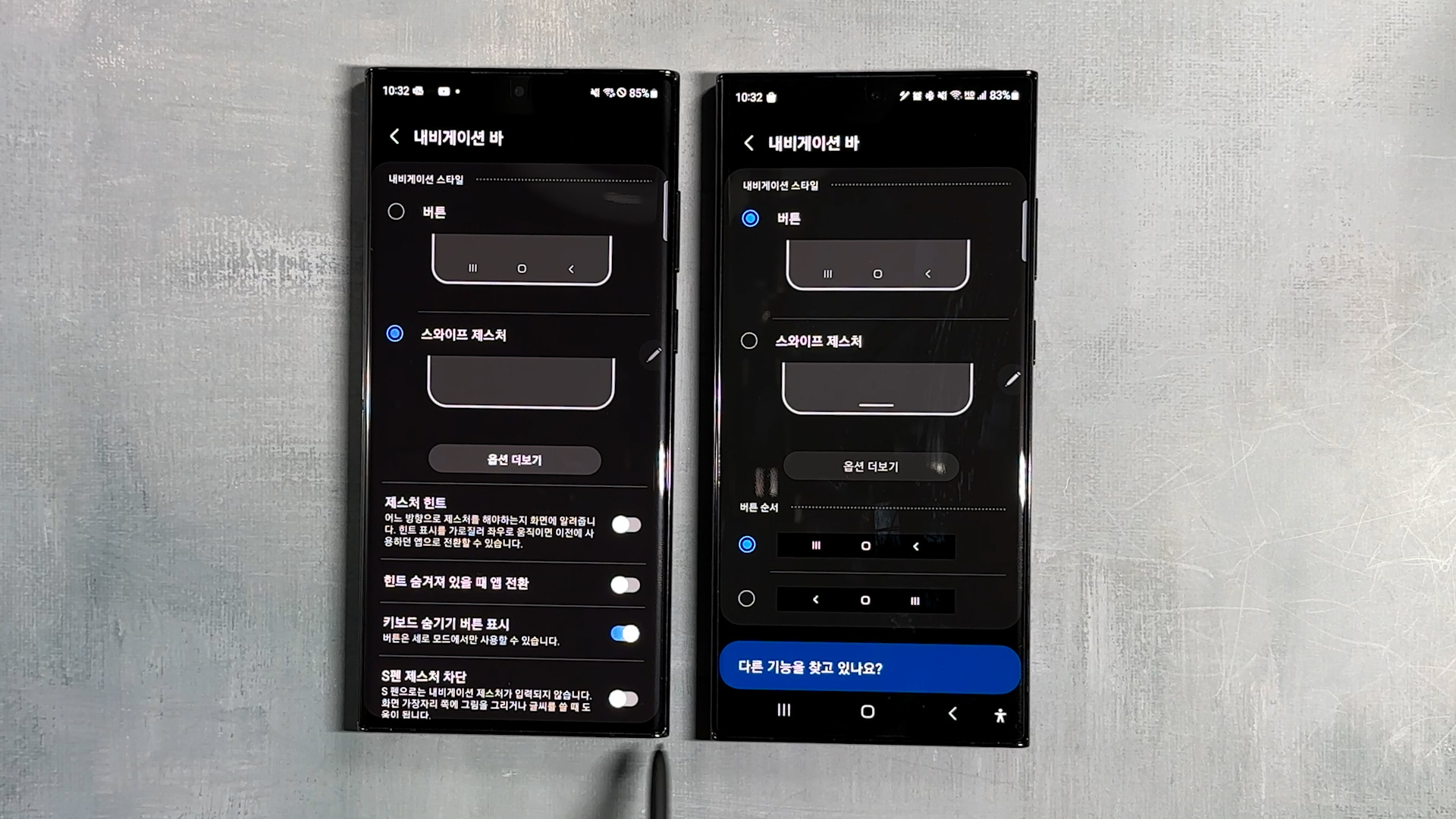 이걸 스와이프 제스처로 변경하면 아래 하단에 버튼이 사라지면서 화면을 넓게 사용이 가능합니다.