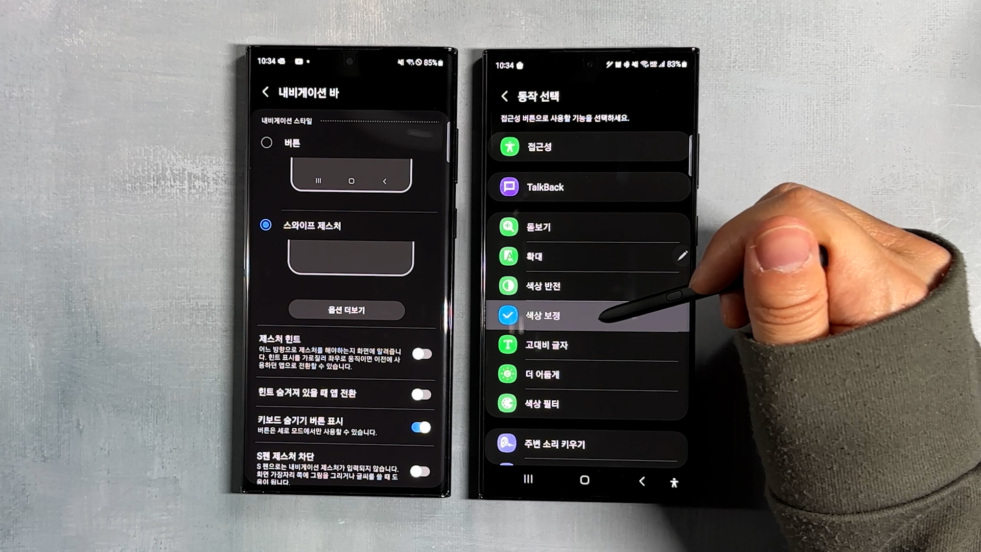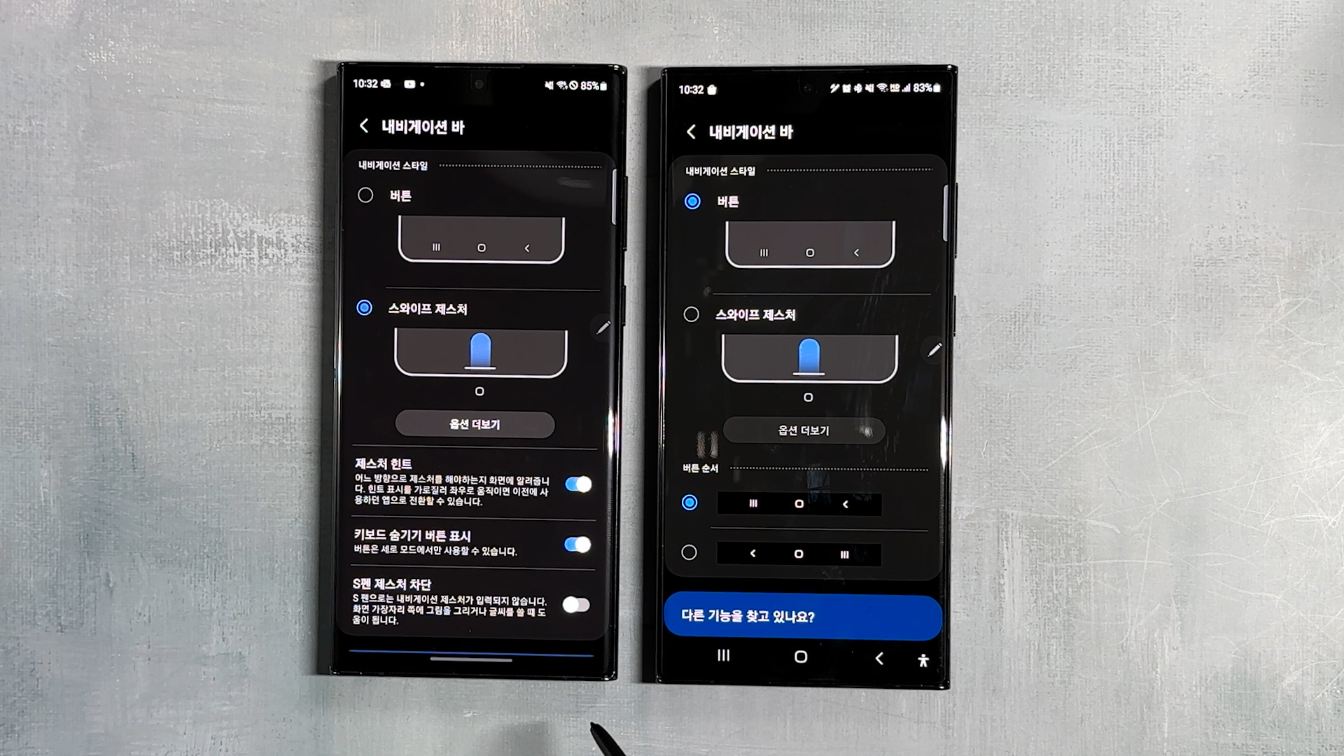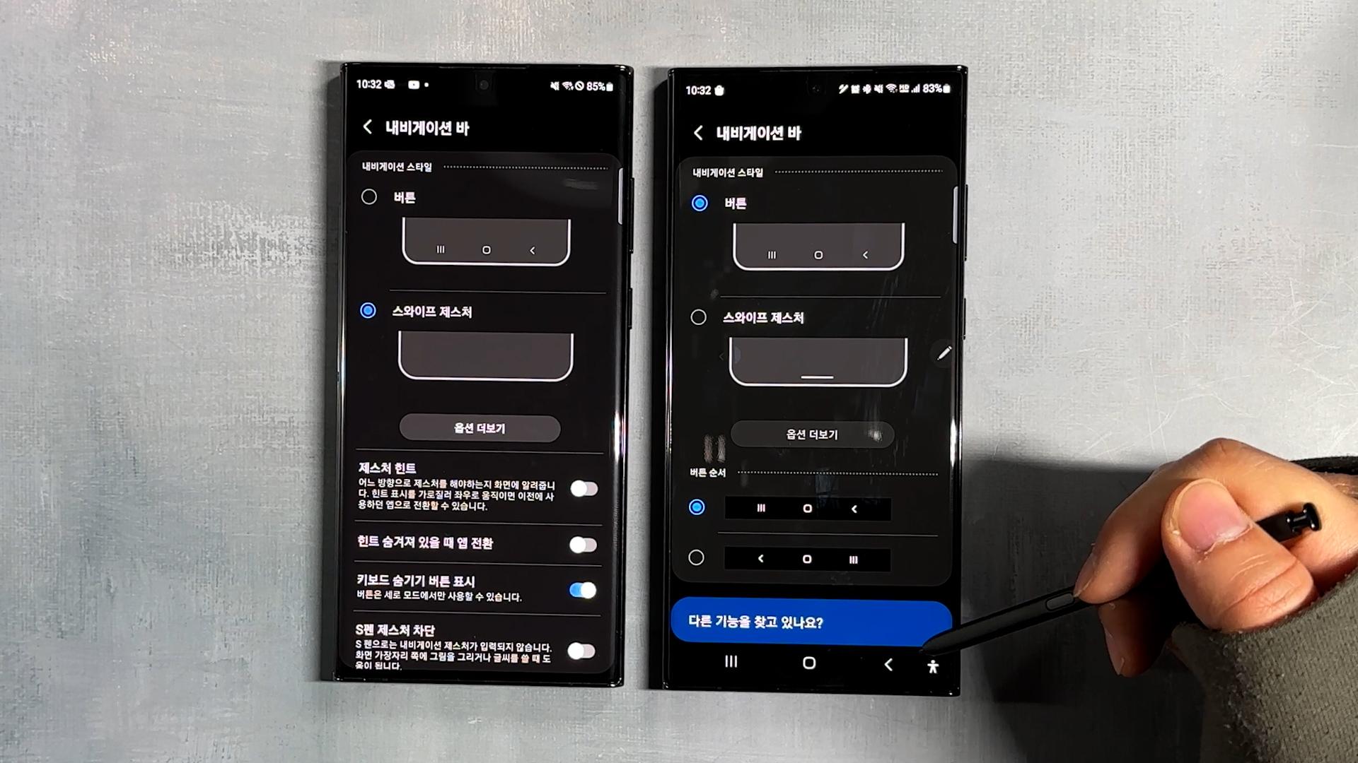 설정 > 디스플레이 > 내비게이션 바 선택하고 저는 버튼 스타일로 사용하는데