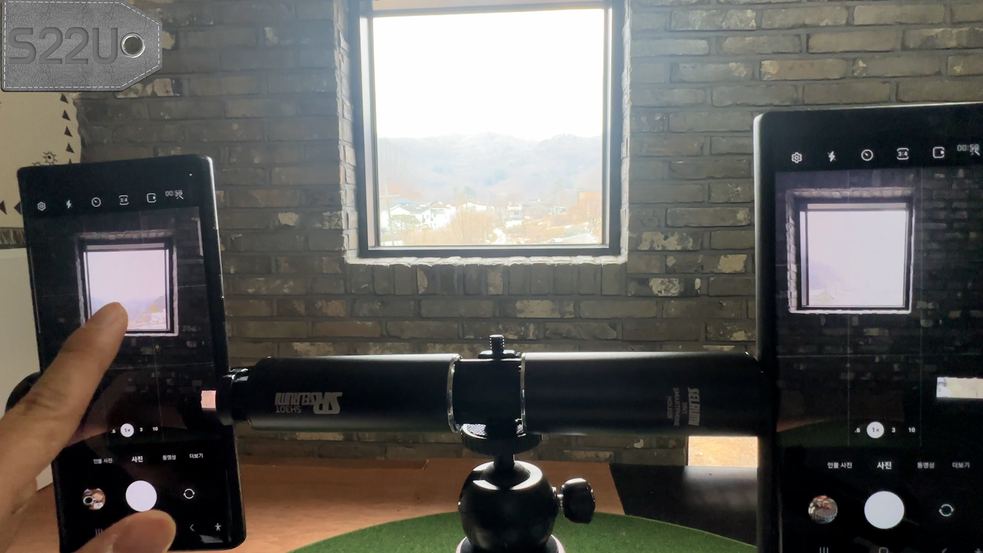 카메라 성능은 S22U는 어두운 실내 환경에서 밝은 피사체에 노출을 맞출때 한번 터치로는 안 되고 조금 길게 누르고 있어야 됩니다.