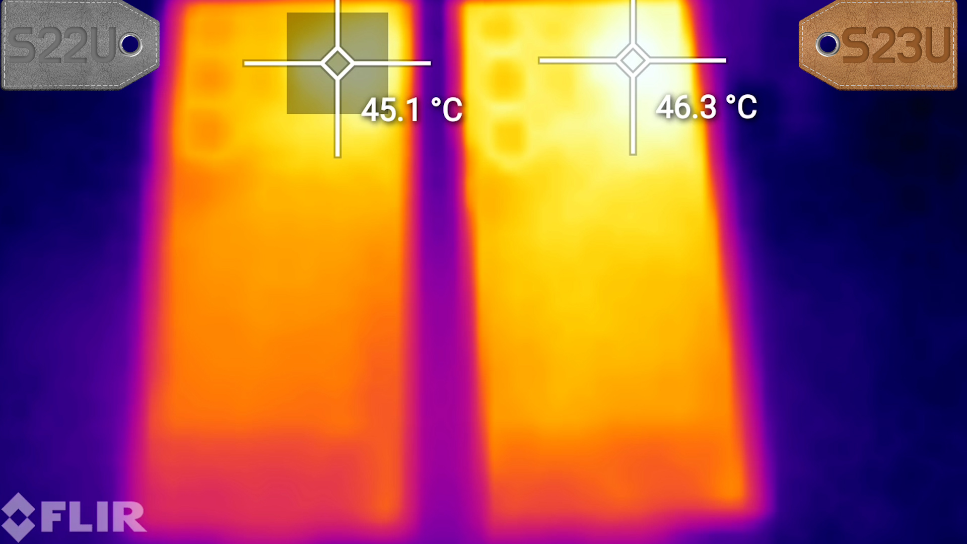 후면 S22U 45°C, S23U 46°C 나왔어요