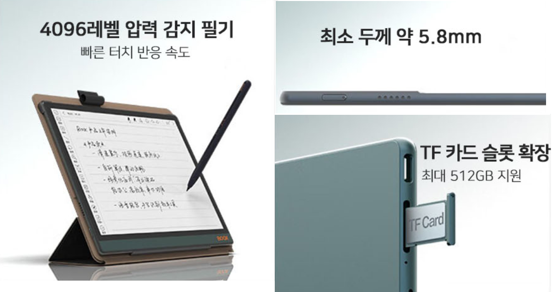 | 북스 노트 에어2+ 10.3인치 | 북스 노트5 10.3인치 | 북스 Tab Ultra 10.3인치 | 북스 Tab 10(내수용) 10.3인치 |