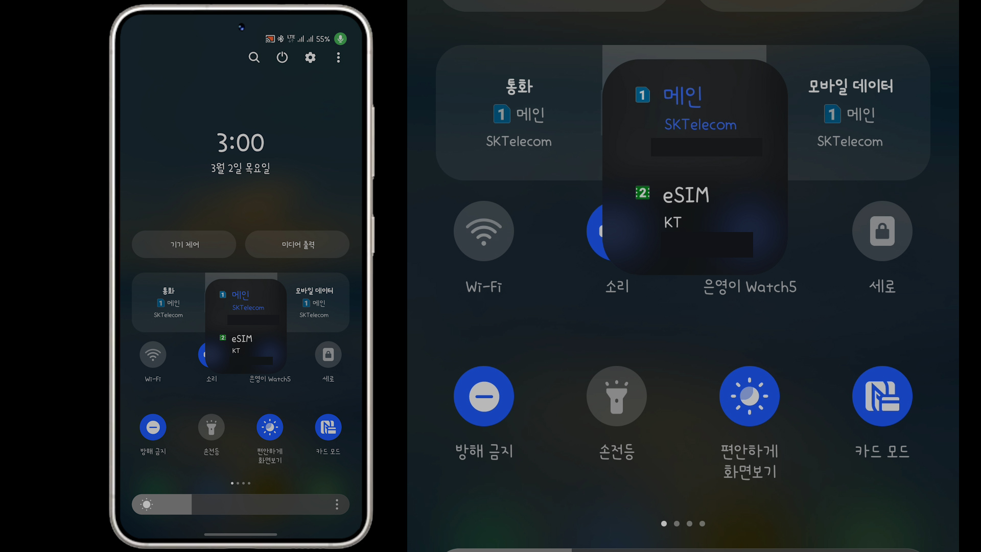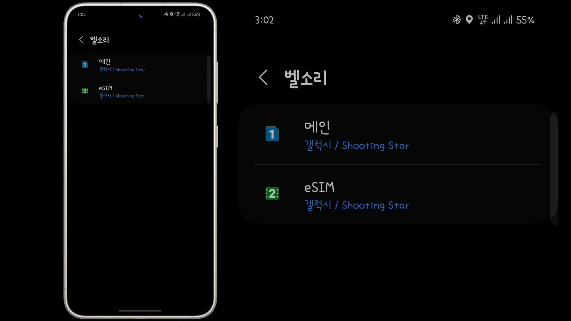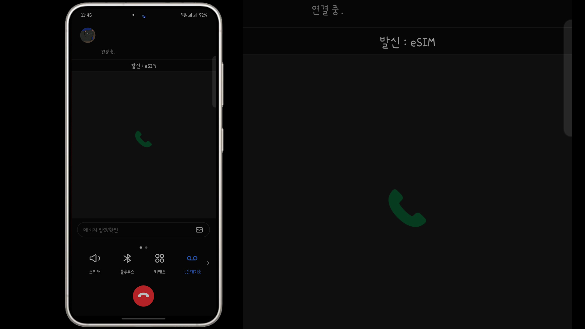 전화를 걸때도 발신에 메인, eSIM 이렇게 구분이 됩니다. (수신도 동일합니다.)