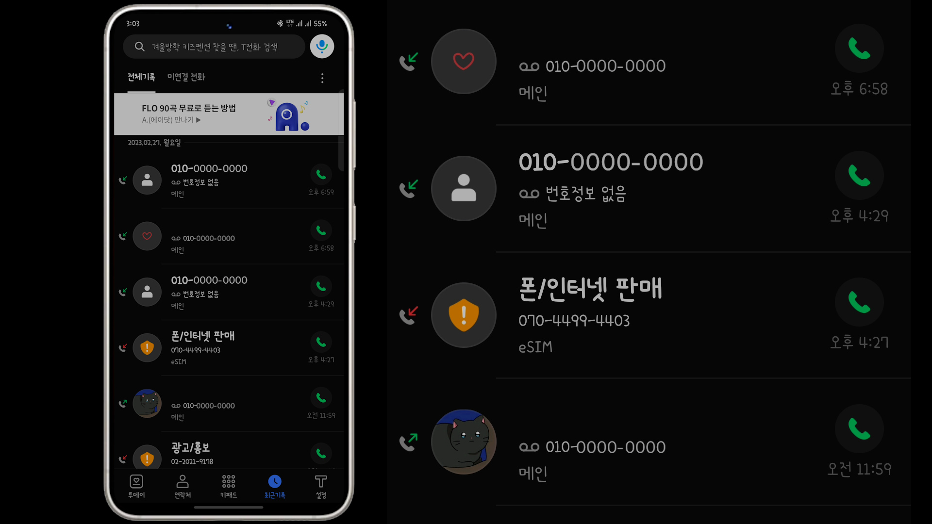 전화는 이렇게 목록을 보면 전화번호 아래 메인, eSIM 이렇게 구분이 됩니다.