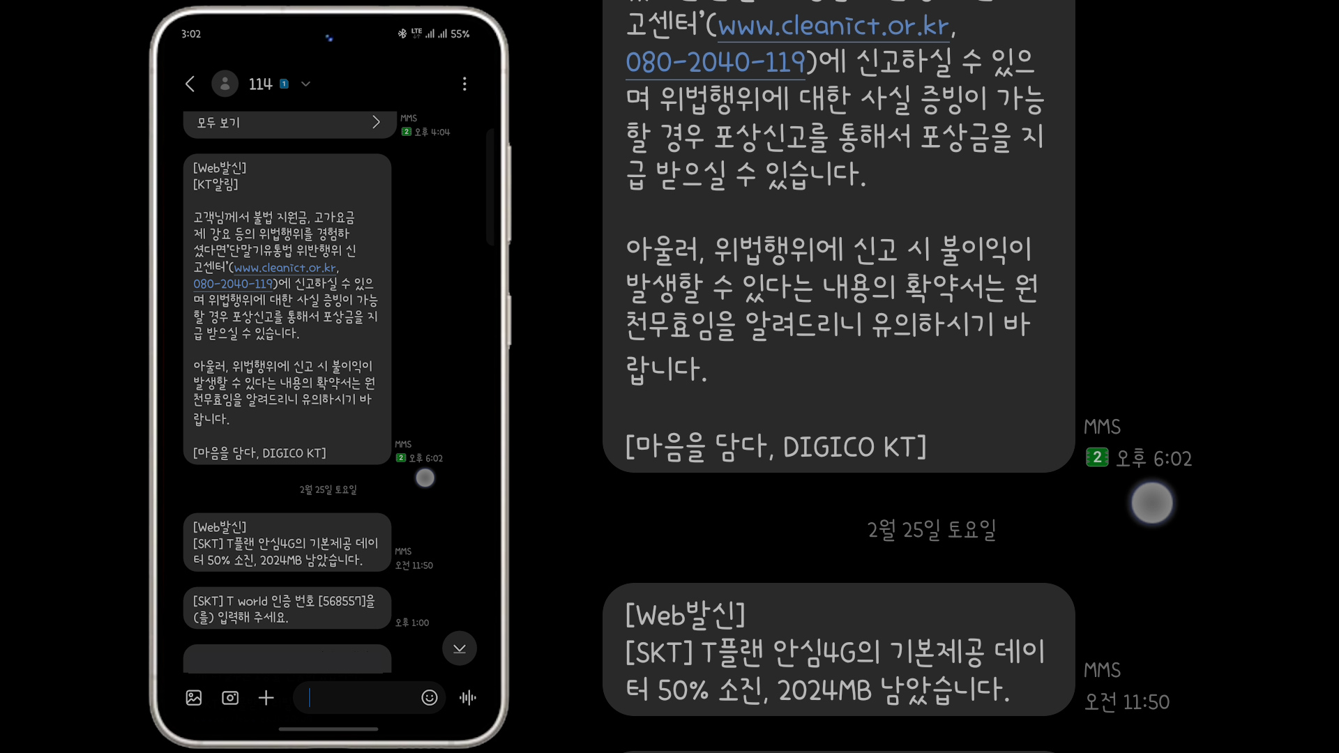 변경이 완료되었다는 문자에 안내에 따라서 2~3번 전원을 ON/OFF해주면 개통이 완료됩니다.