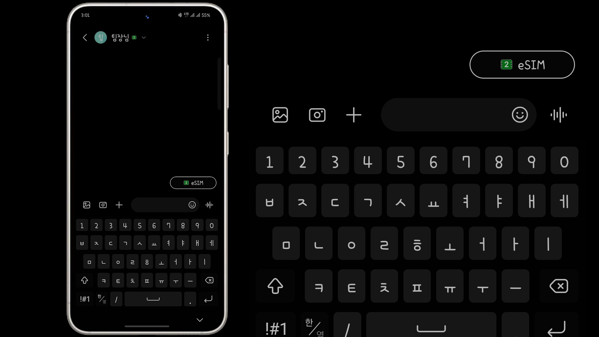 그리고 받은 문자에 우측 하단을 보면 메인은 아이콘이 없고, eSIM은 문자 옆에 2 아이콘이 이렇게 보여서 구분할 수 있습니다.