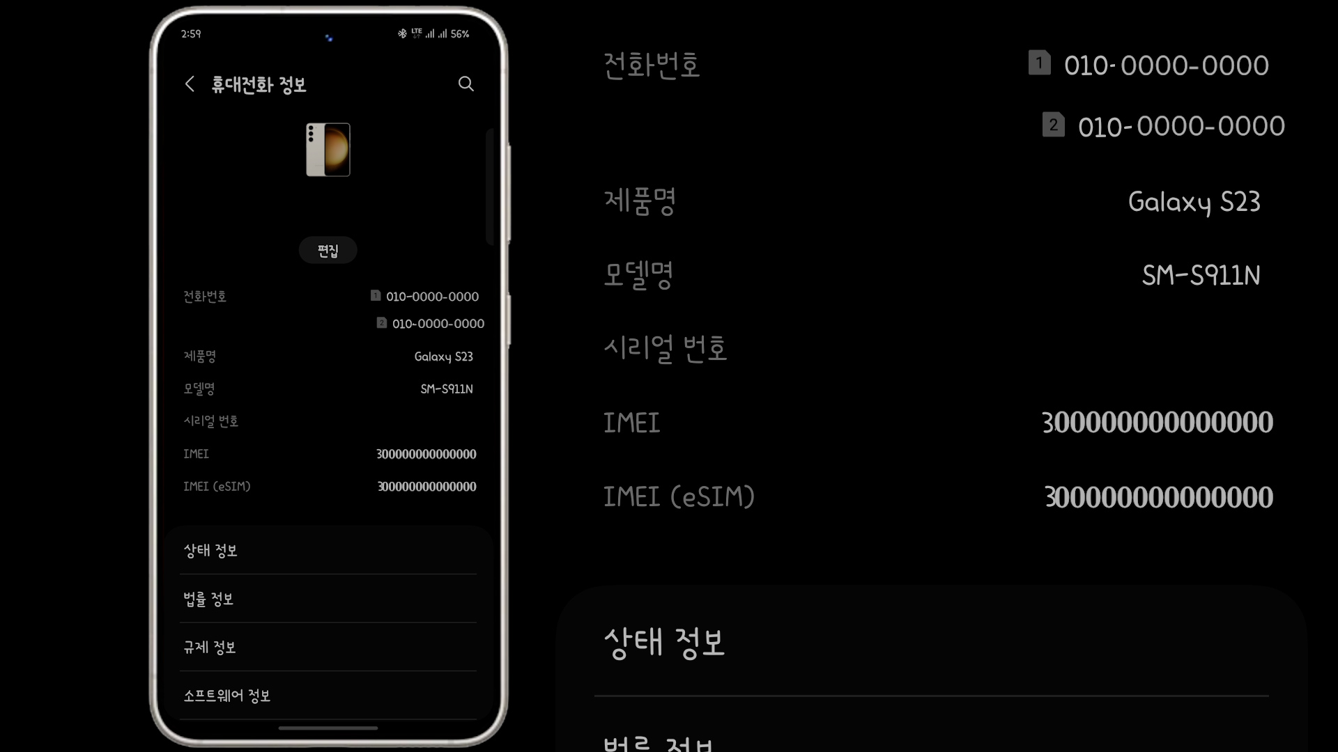 설정 들어가서 맨 아래 내려가면 휴대전화 정보 가운데 보면 IMEI 2개가 나오는데 밑에거는 eSIM 번호에요