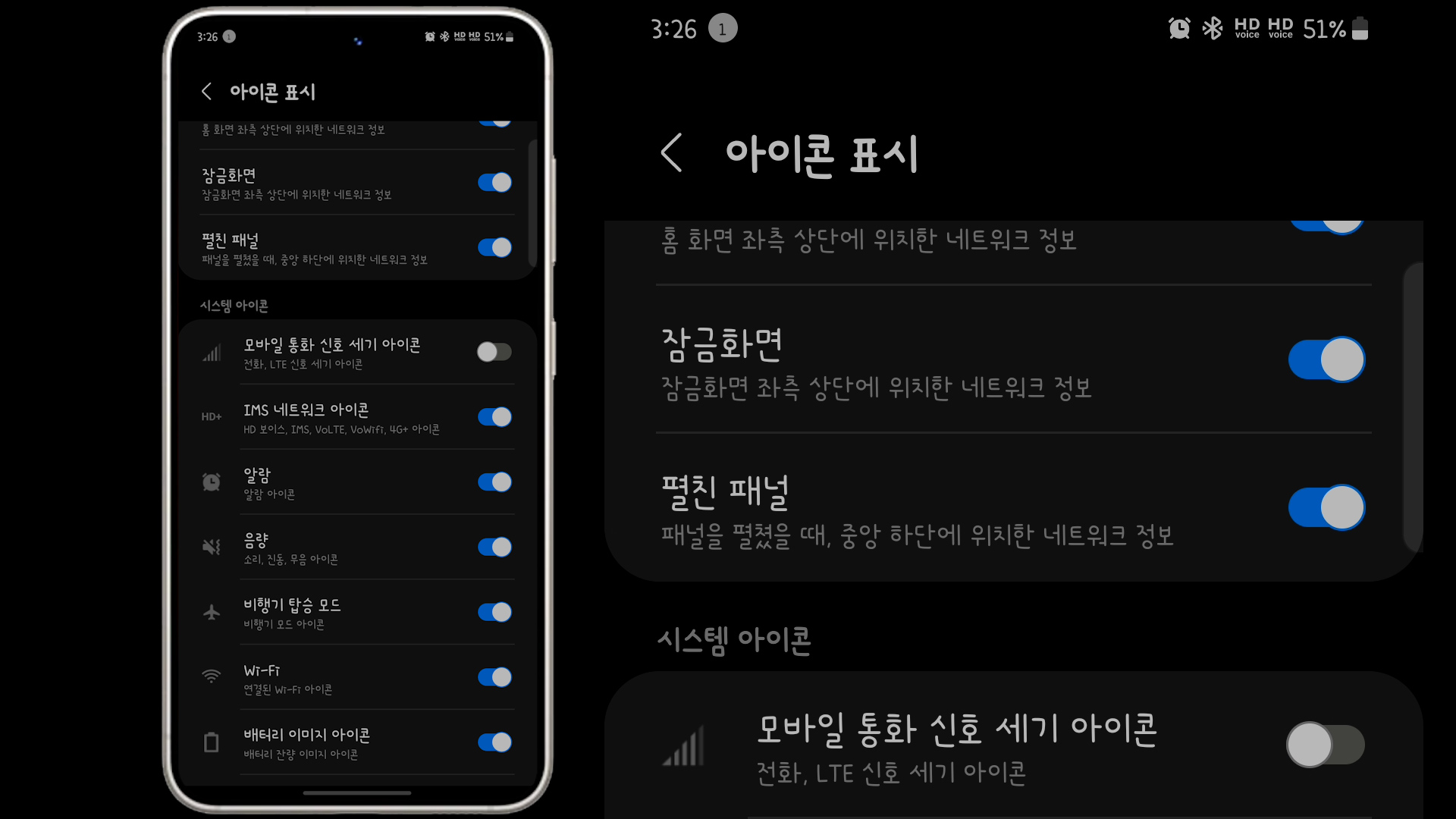 설정에서 아이콘 표시를 끄고 켤수 있습니다.