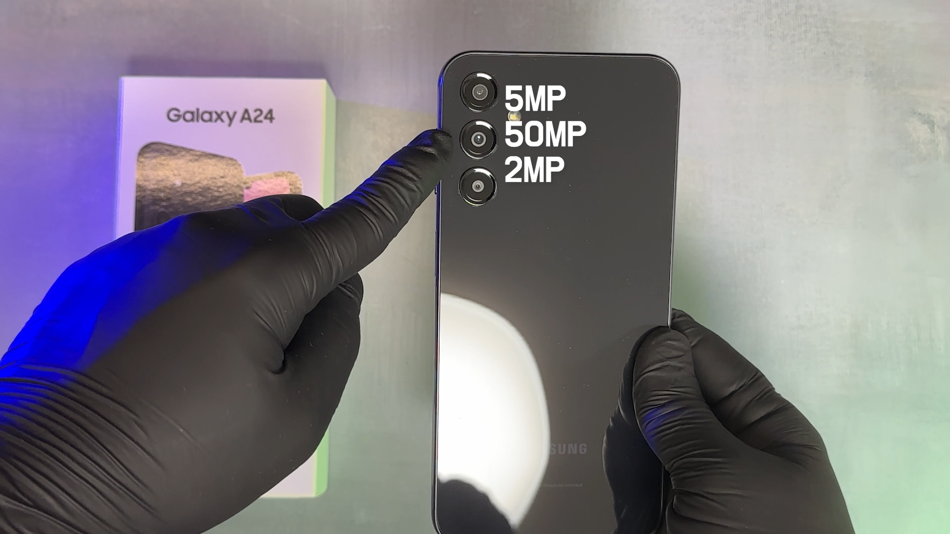 갤럭시 A24 후면 카메라는 5MP 초광각, 50MP 메인, 2MP 접사 카메라입니다.