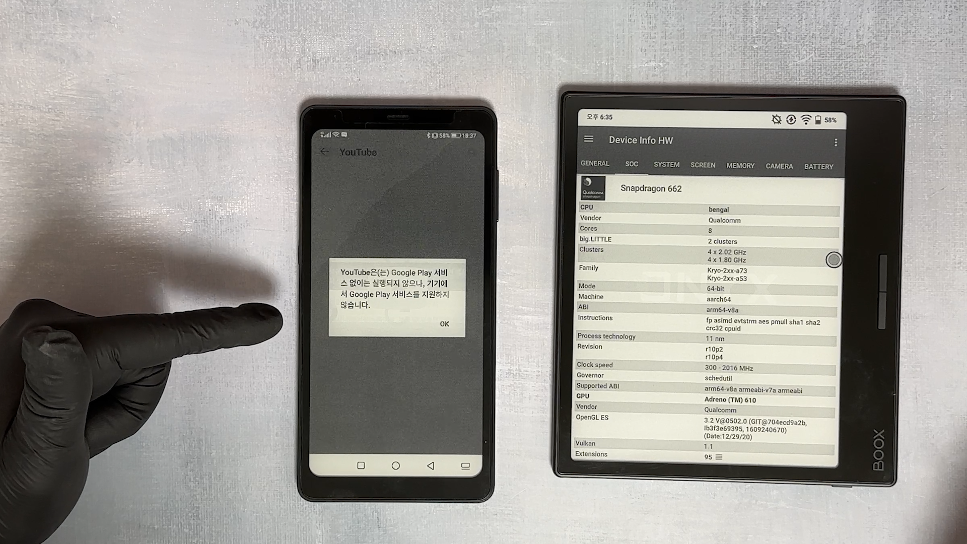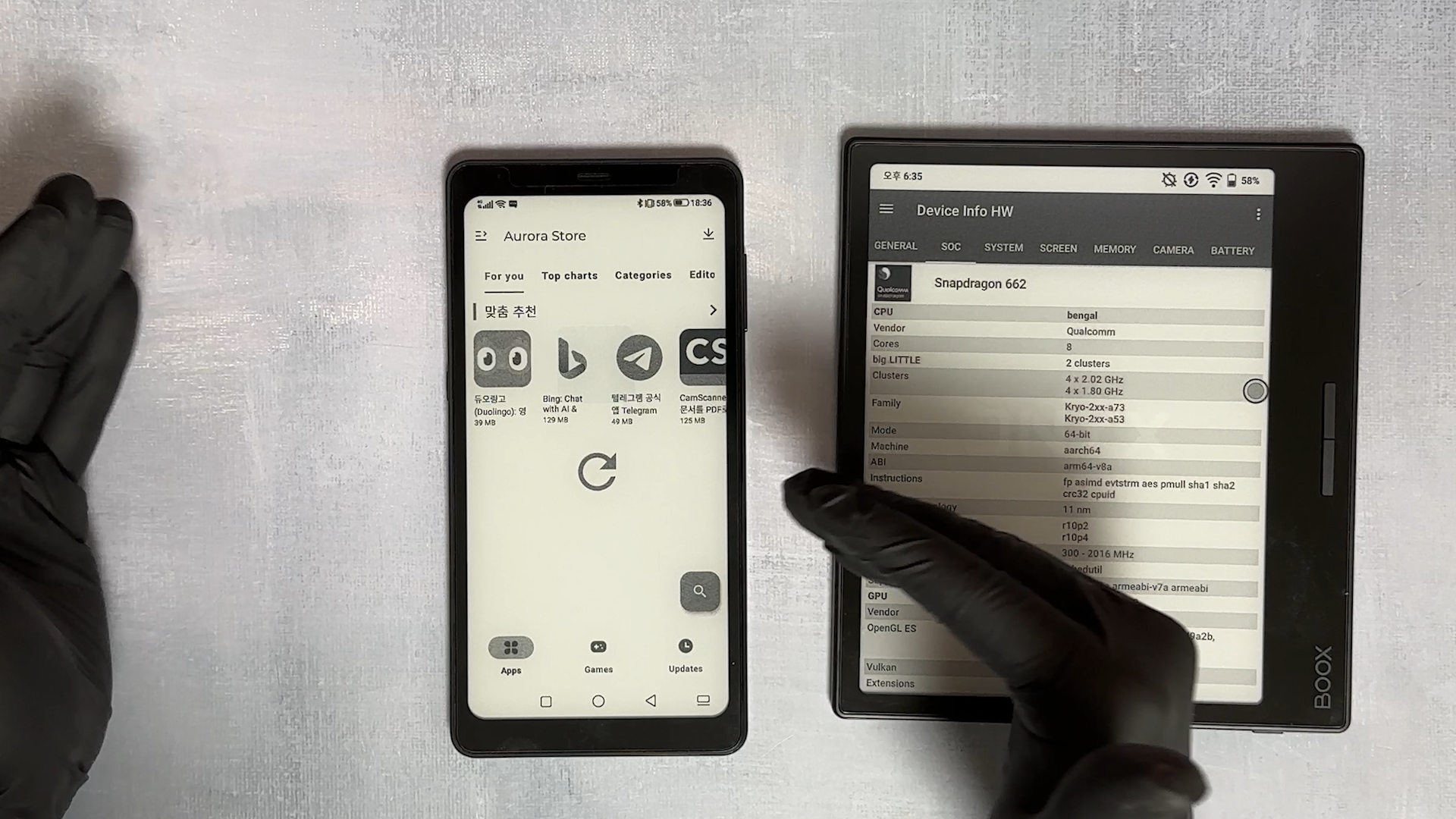Hi Reader Pro는 Snapdragon 662에 8코어를 사용하고 있고 A5는 Snapdragon 439에 8코어 제품입니다.