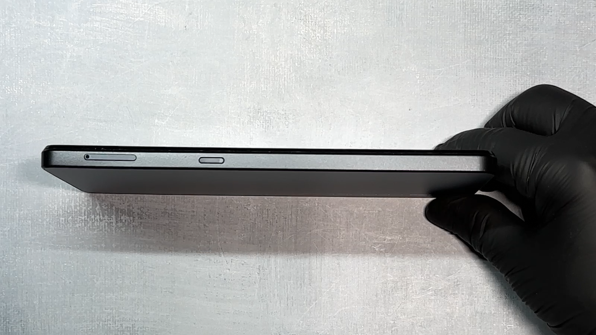 왼쪽 측면은 유심 제거 핀이 있고, 새로고침 버튼도 보입니다.
