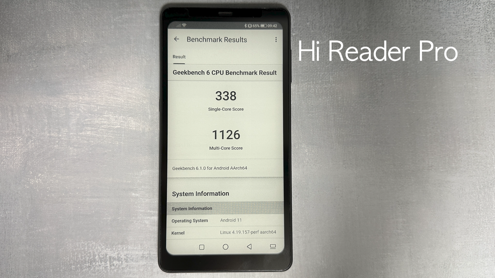 Geekbench 6 테스트한 Hi Reader Pro는 결과 싱글 338, 멀티 1126점 나왔습니다.