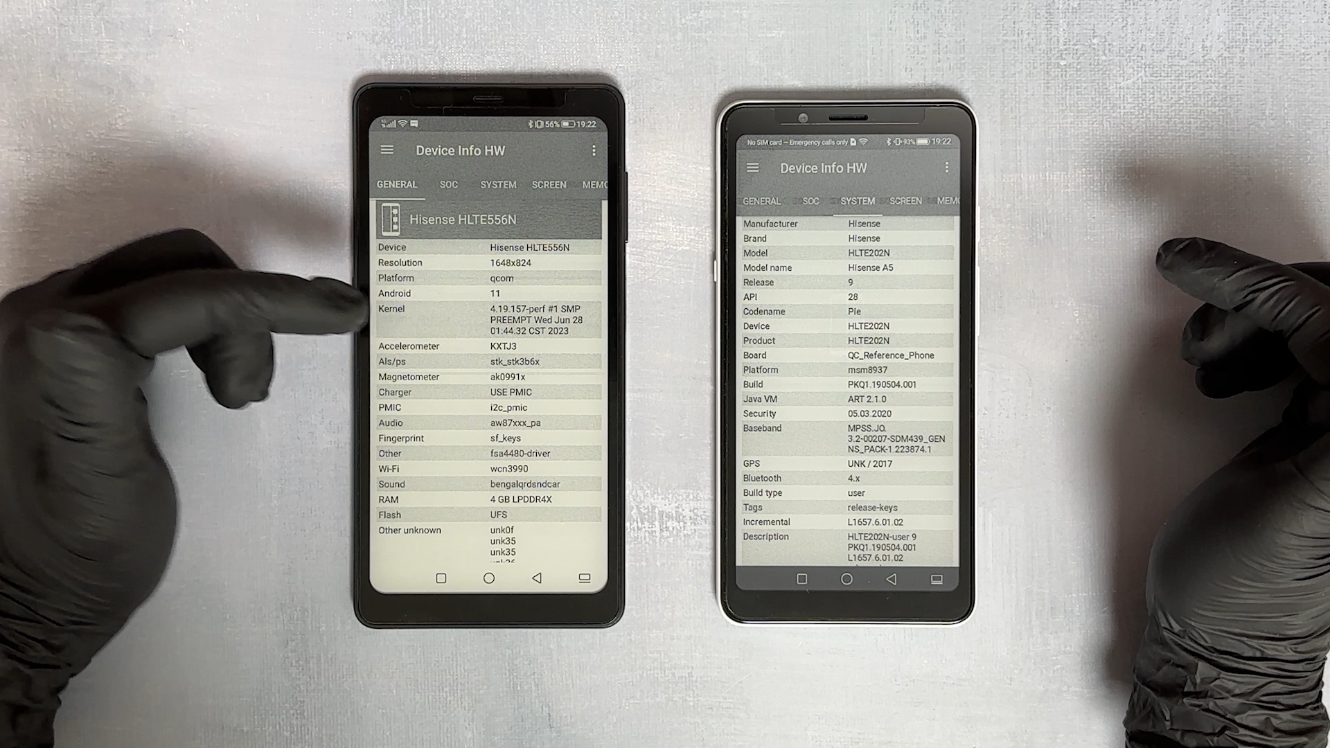 뒤쪽을 보면 Hisense A5 제품은 13MP 카메라가 있고, Hi Reader Pro는 카메라가 없습니다.