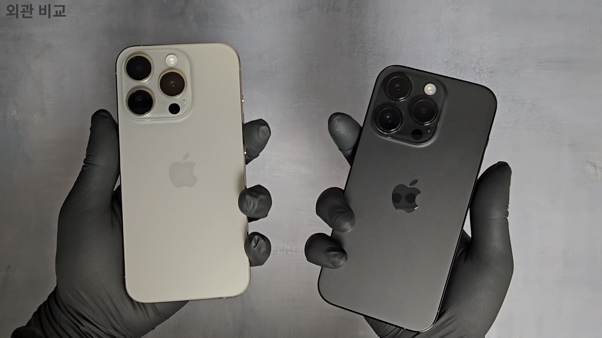 왼쪽의 아이폰 15 프로는 A17 Pro 칩을 탑재했습니다