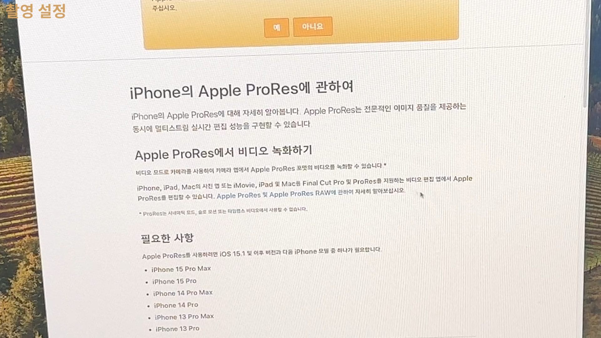 아이폰 15 프로부터는 ProRes 비디오 녹화를 USB 저장 장치에 저장할 수 있는 방식입니다.
