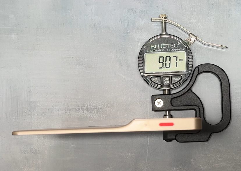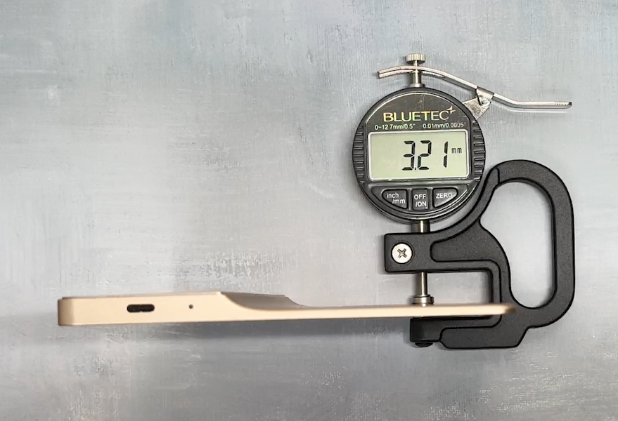 두께는 가장 얇은 부분이 3.2mm, 두꺼운 부분은 9mm 입니다.