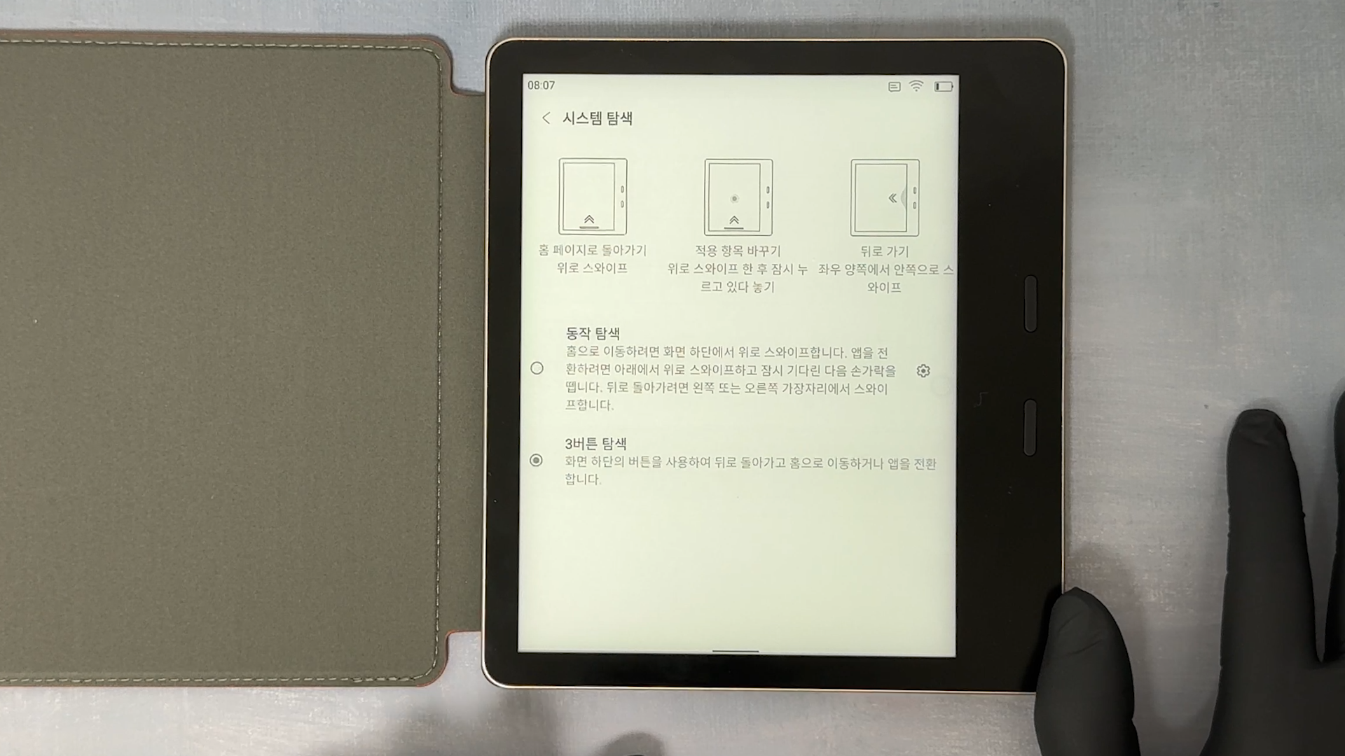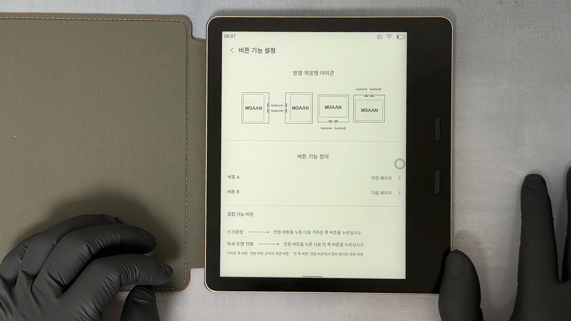 본체 박스 안쪽에는 물리키가 있는 7인치 e북 Reader가 있고, 물리 버튼 눌리는 감촉도 괜찮습니다.