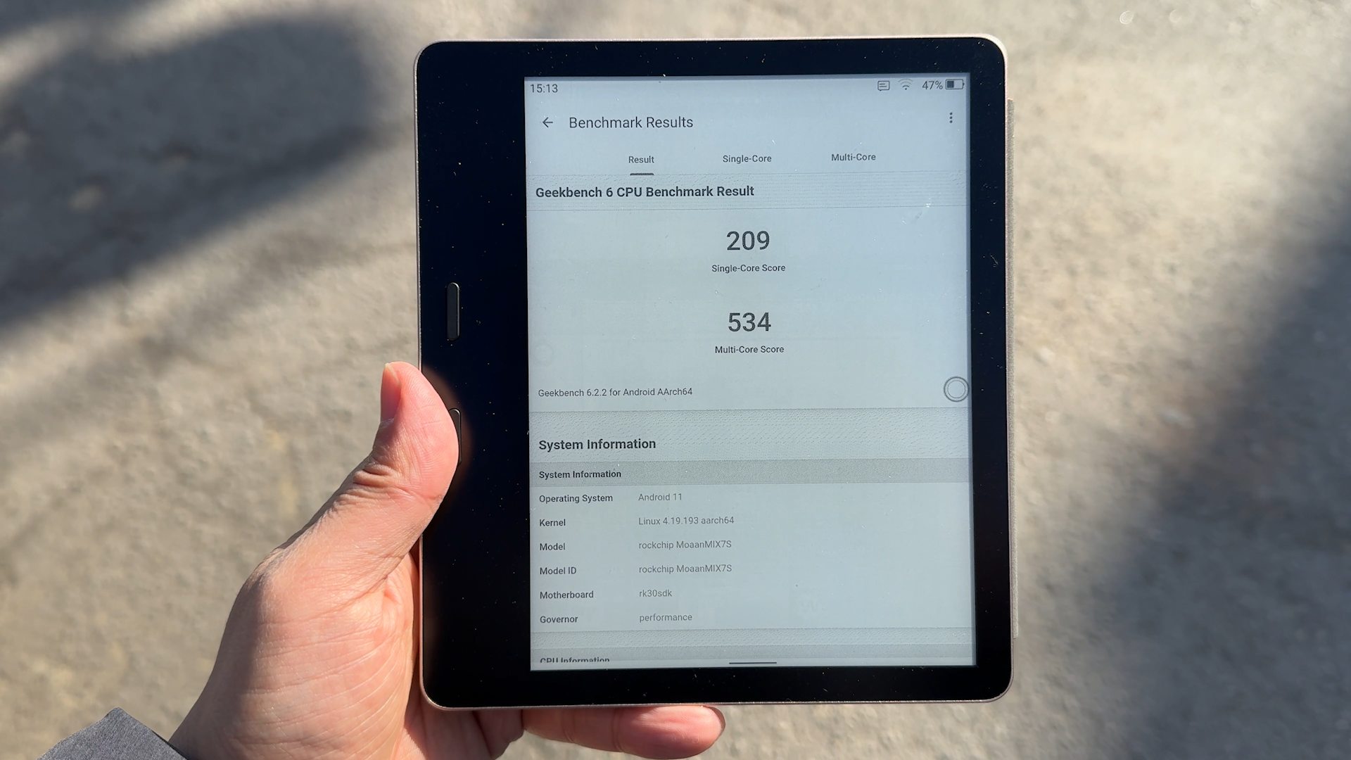 성능은 Rockchip RK3566에 4코어를 사용합니다. Geekbench 6 측정 결과 싱글 209점, 멀티 534점 나왔습니다. 보위에 Meebook M7 제품도 동일 AP를 사용하지만 M7은 RAM 3GB, ROM 32GB인데 Moaan MIX7S 제품은 RAM 4GB, ROM 64GB를 사용해서 성능이 더 좋습니다.