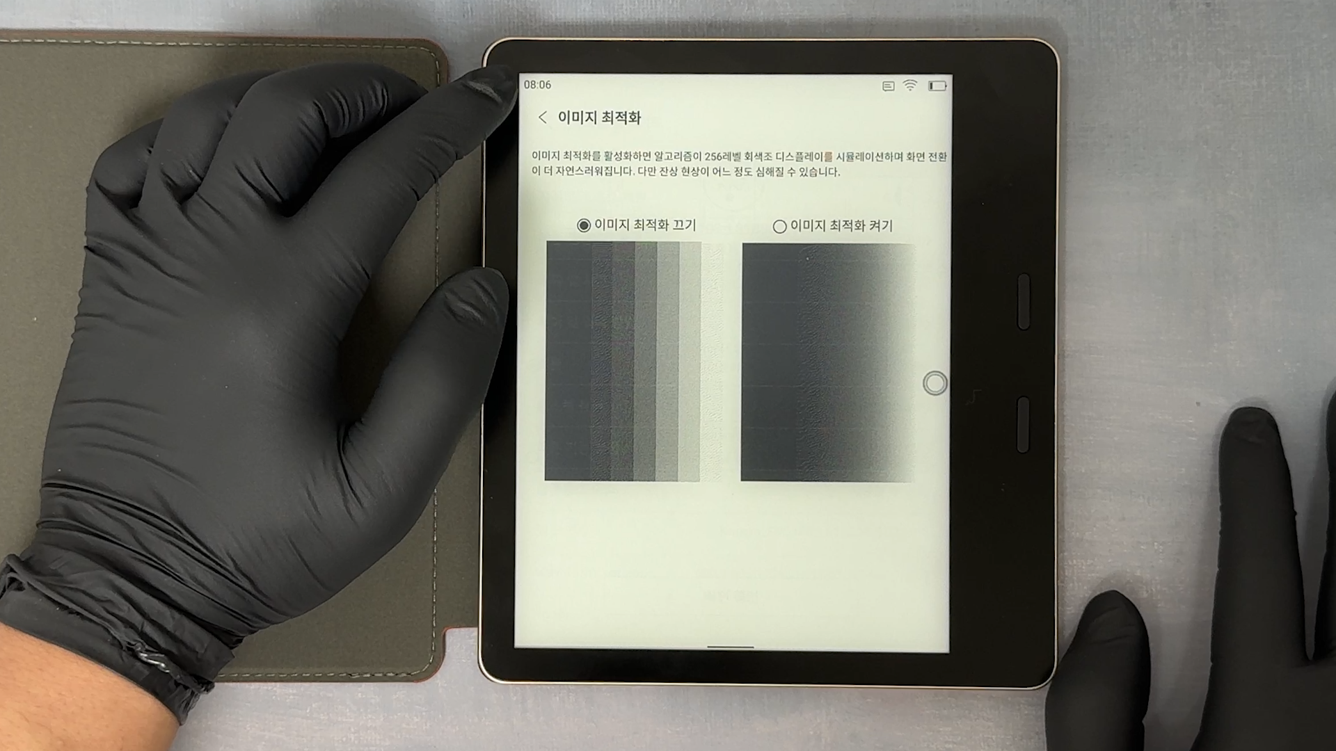 책을 볼때 형광펜이 흐릿해서 잘 안 보이면 앱 최적화 구성으로 이동해서 명암 조정을 올려주면 됩니다.
