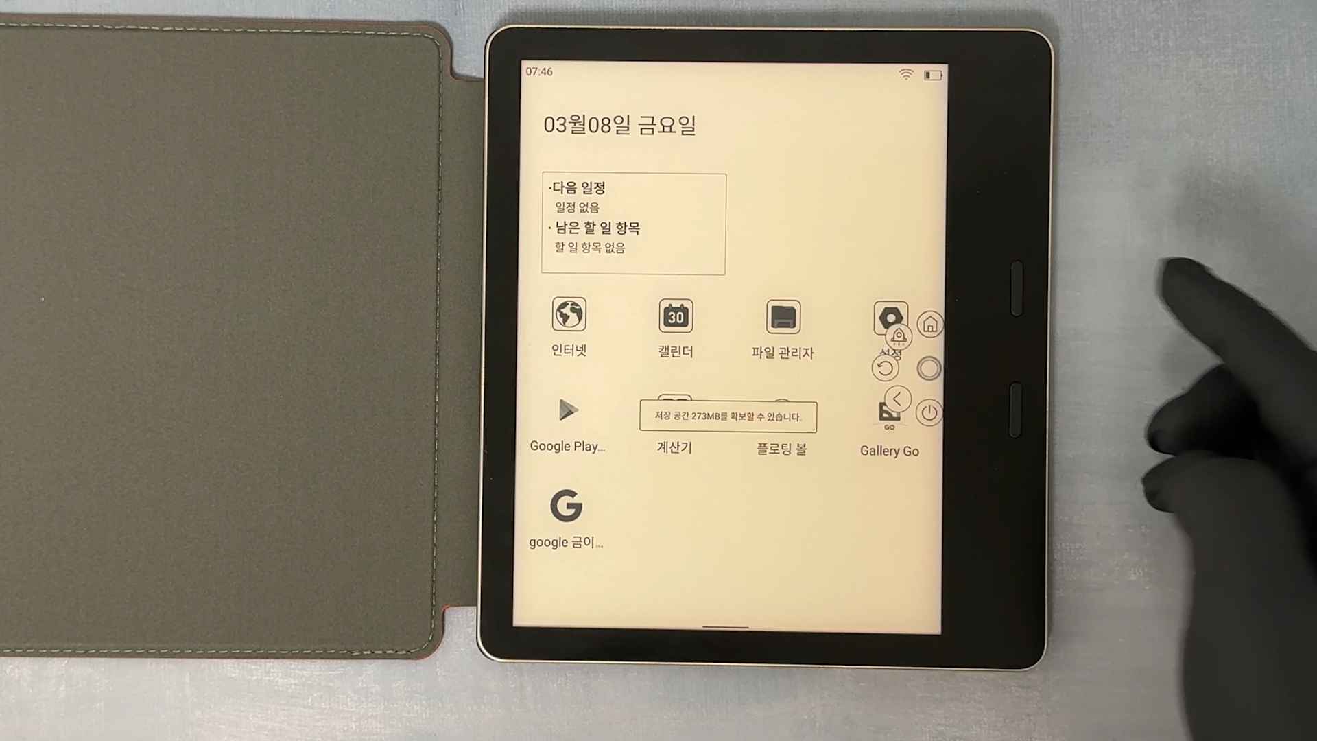 아쉬운 점은 터치 오류가 발생이 됩니다. 제품 단가를 낮추려고 저가 터치 패널을 사용한 것 같은데, 크레마 모티프나 ONYX 포크2 컬러 리뷰할 때도 동일하게 터치 오동작이 발생되었습니다. 이 제품이 얼마에 출시할지 모르겠는데 고가로 출시하면 저가 터치 패널이 아쉬울 것 같고 괜찮은 가격으로 출시된다면 어느정도 타협이 될 것 같습니다. 화면을 스크롤 할 때는 빠르게 하지 말고 천천히 쓸어 올리면 터치 오동작은 발생하지 않으니까 실 사용할 때는 이렇게 사용하면 됩니다.
