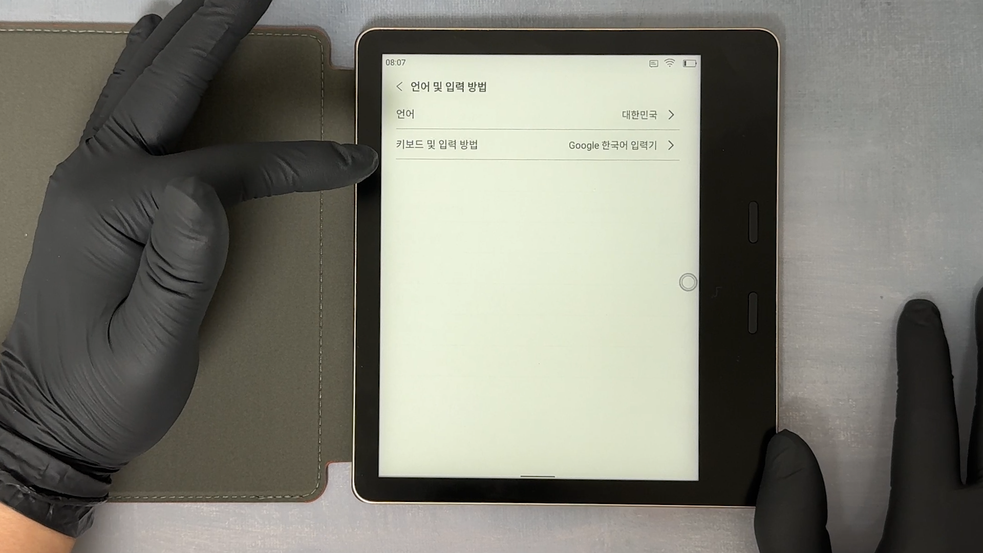 구글 키보드가 기본으로 탑재되어 있습니다. 키보드 타이핑 지연은 되지만 일반적인 시중에 판매하는 e잉크 Reader와 속도 차이는 없는 것 같습니다.