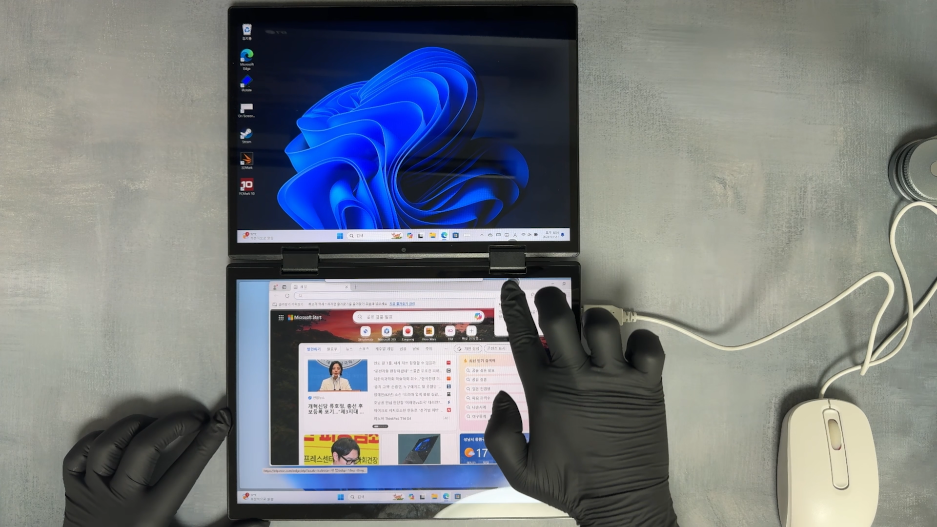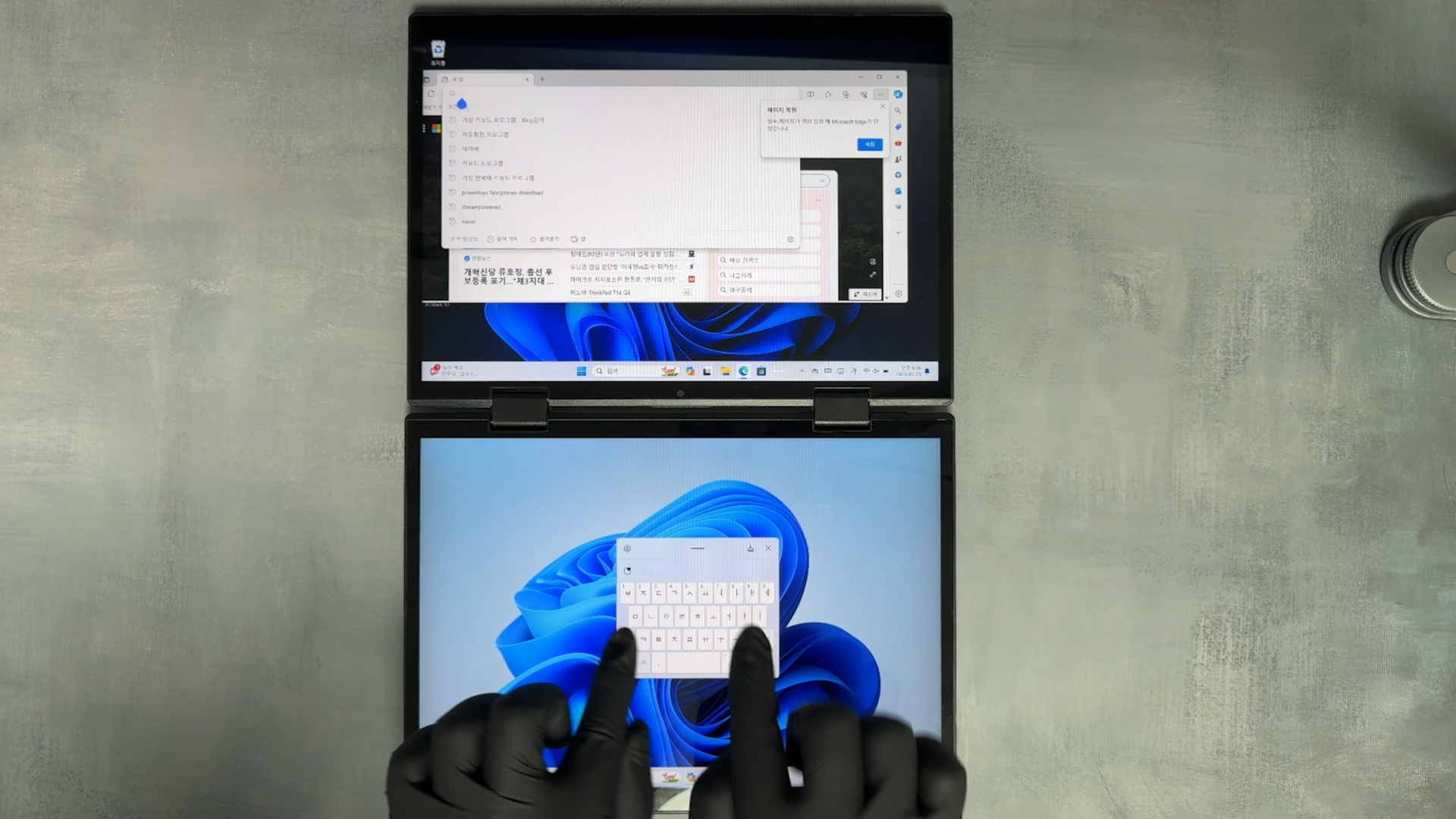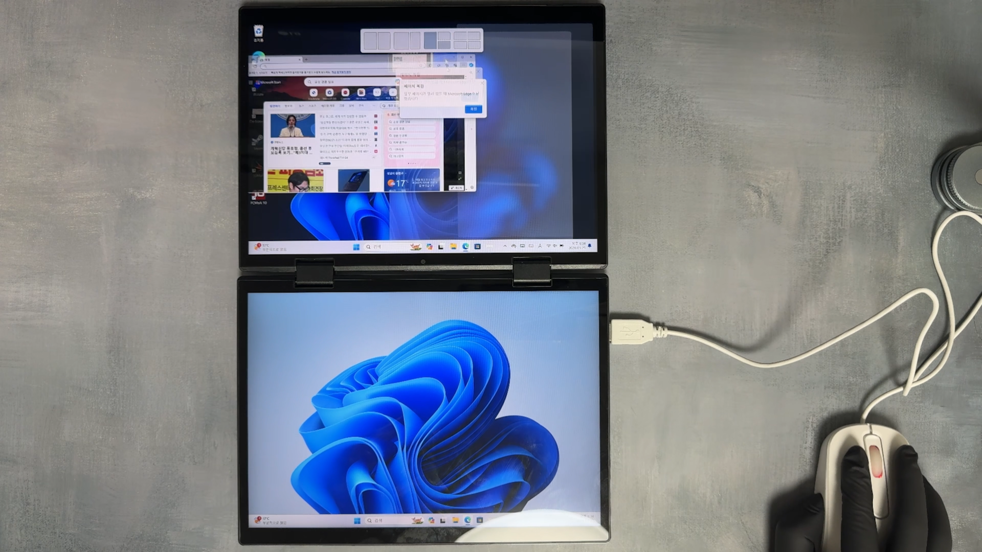 이런 듀얼 액정 태블릿은 소프트웨어가 중요한데요 베어본 제품이 OS만 설치해서 전용 소프트웨어가 없습니다. 마우스와 키보드를 사용하면 문제가 없는데요 터치로 모든 조작을 하려고 하면 전용 소프트웨어가 필요합니다. 예를 들어서 창을 드래그할 때 마우스를 사용하면 창 이동이 수월합니다. 창 이동을 터치로 이동할 때는 어렵습니다. 터치로는 창을 위로 올릴 수가 없잖아요