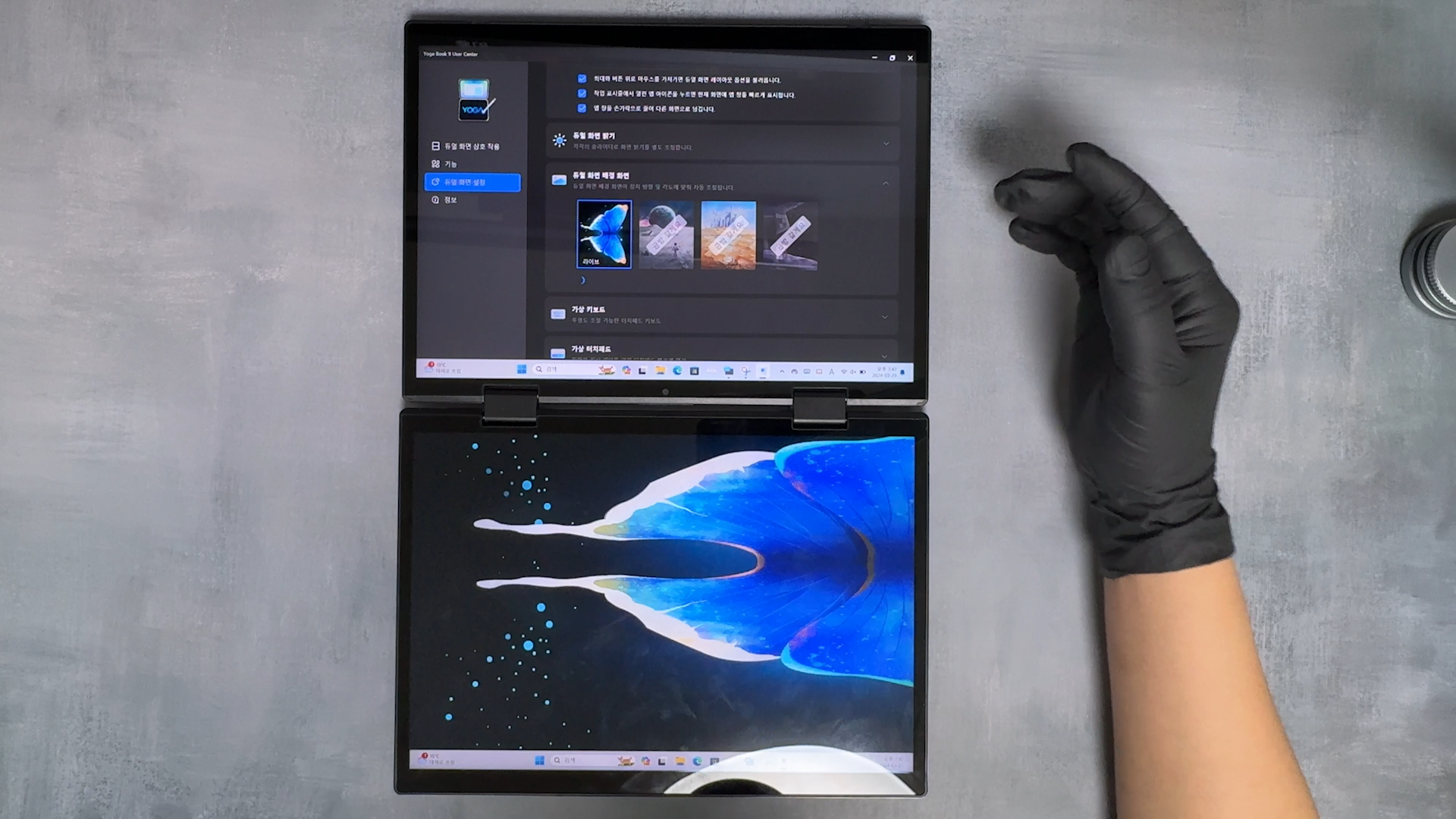 추가로 레노버 요가북 9i 제품 소프트웨어를 설치해봤는데요. 배경 화면을 듀얼 액정에 표시해 주는 기능은 동작이 됩니다.