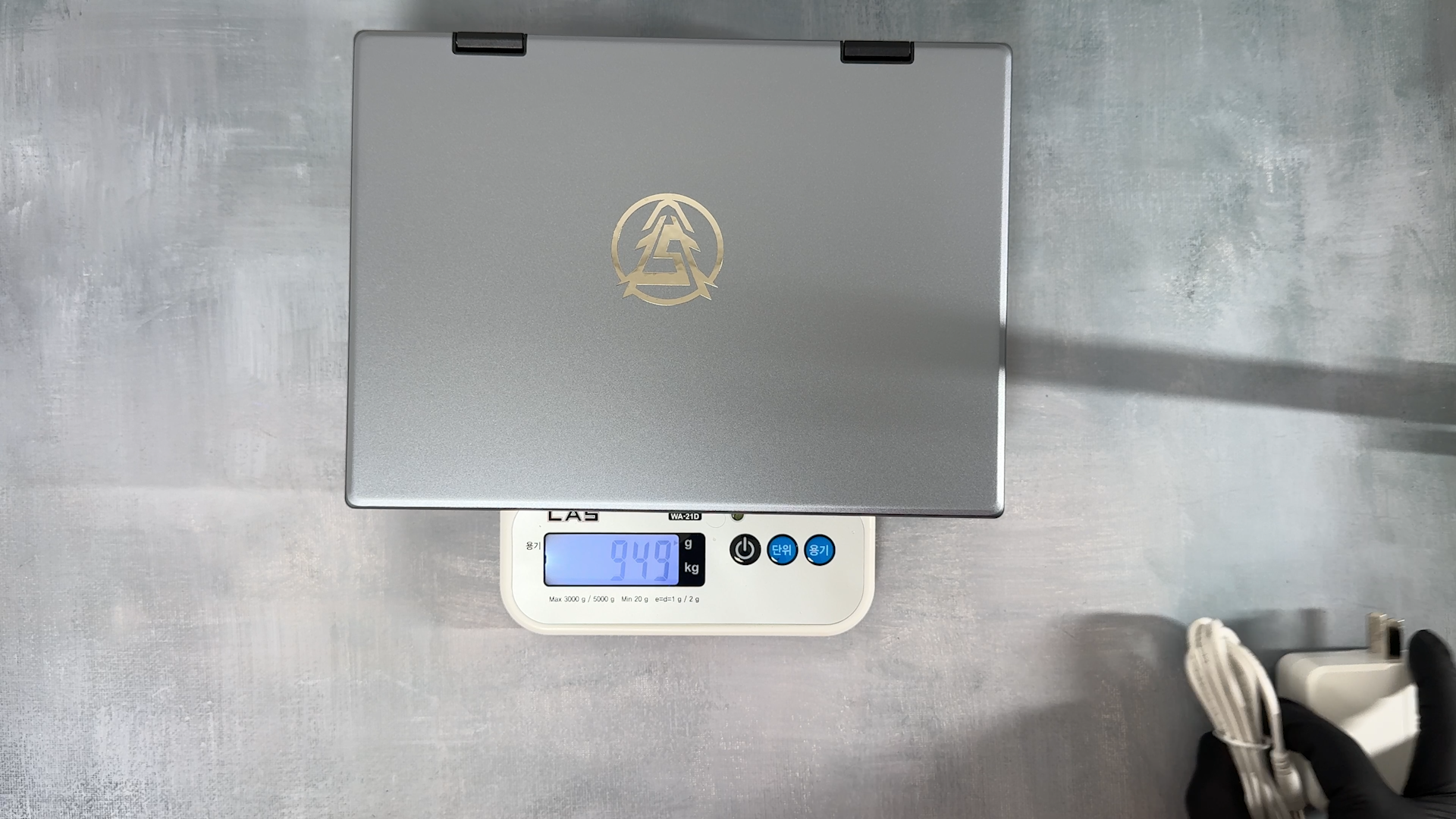 무게는 949g이고, 충전기를 함께 들고 다니면 1,052g입니다.