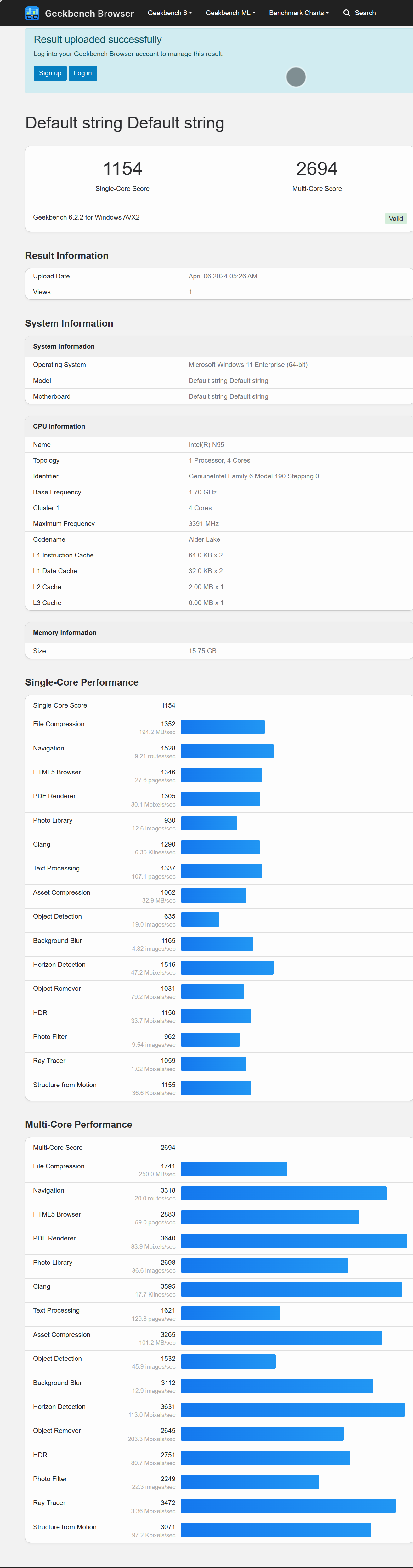 Geekbench 6 - 싱글 1154점, 멀티 2694점 나옵니다.