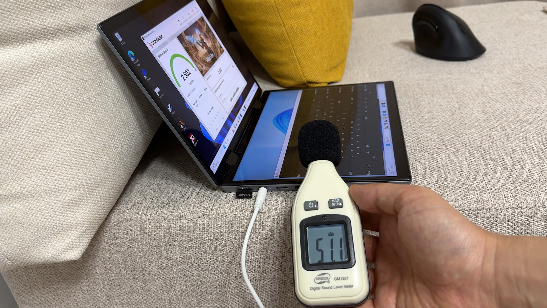 제품 팬 소음은 50dB 이상 측정되었고 팬이 꺼지면 40dB 이상 나옵니다. 사용하면서 상시 팬이 돌기 때문에 소음은 있는 편입니다.