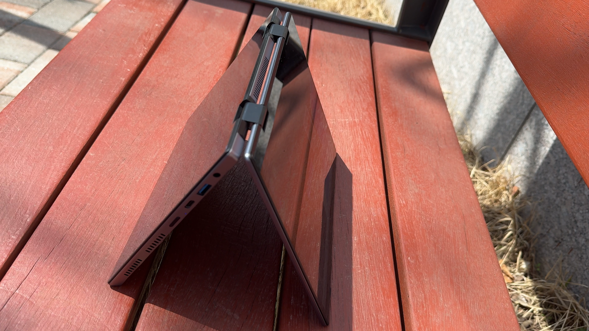 ASUS 젠북 듀오 2024 제품이 180° 각도만 펼쳐져서 아쉬웠는데요 이 제품은 레노버 요가북 9i 제품처럼 360° 펼칠 수 있습니다. 태블릿으로 사용하려면 이렇게 다양한 각도로 조정되는 게 좋습니다.