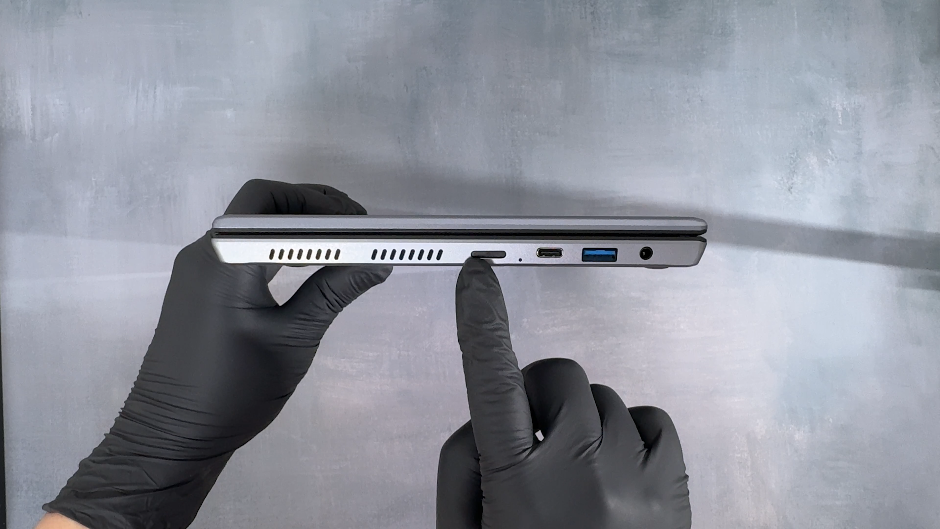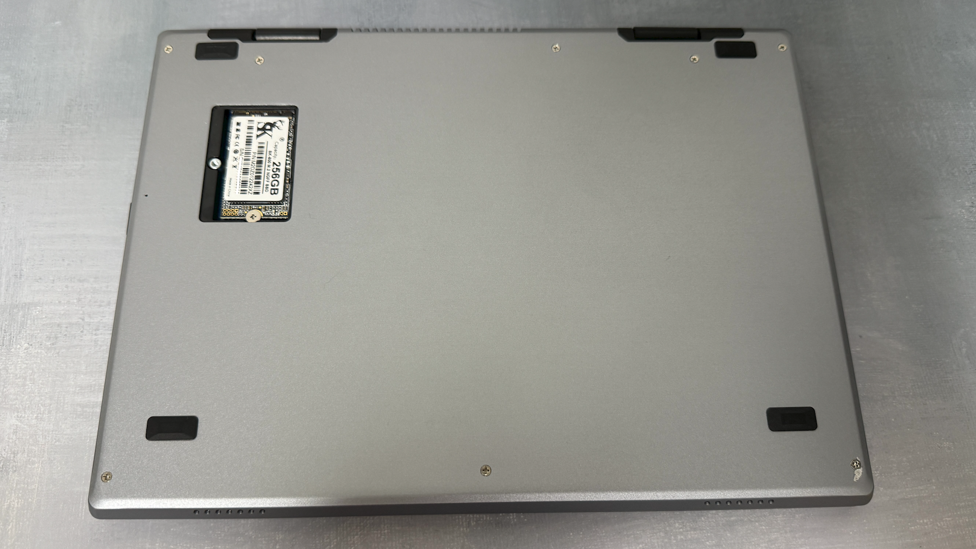 하단에 고무 받침, SSD 슬롯이 보입니다.