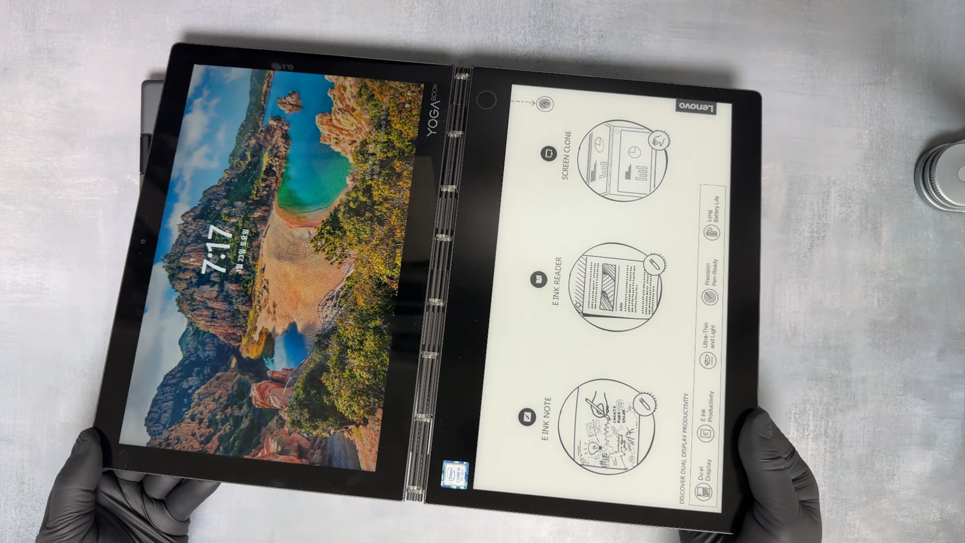 비슷한 듀얼 디스플레이 컨셉의 레노보 요가북 C930 제품과 비교했습니다. 이 제품은 LCD와 E-Ink 디스플레이를 사용하고 있습니다.