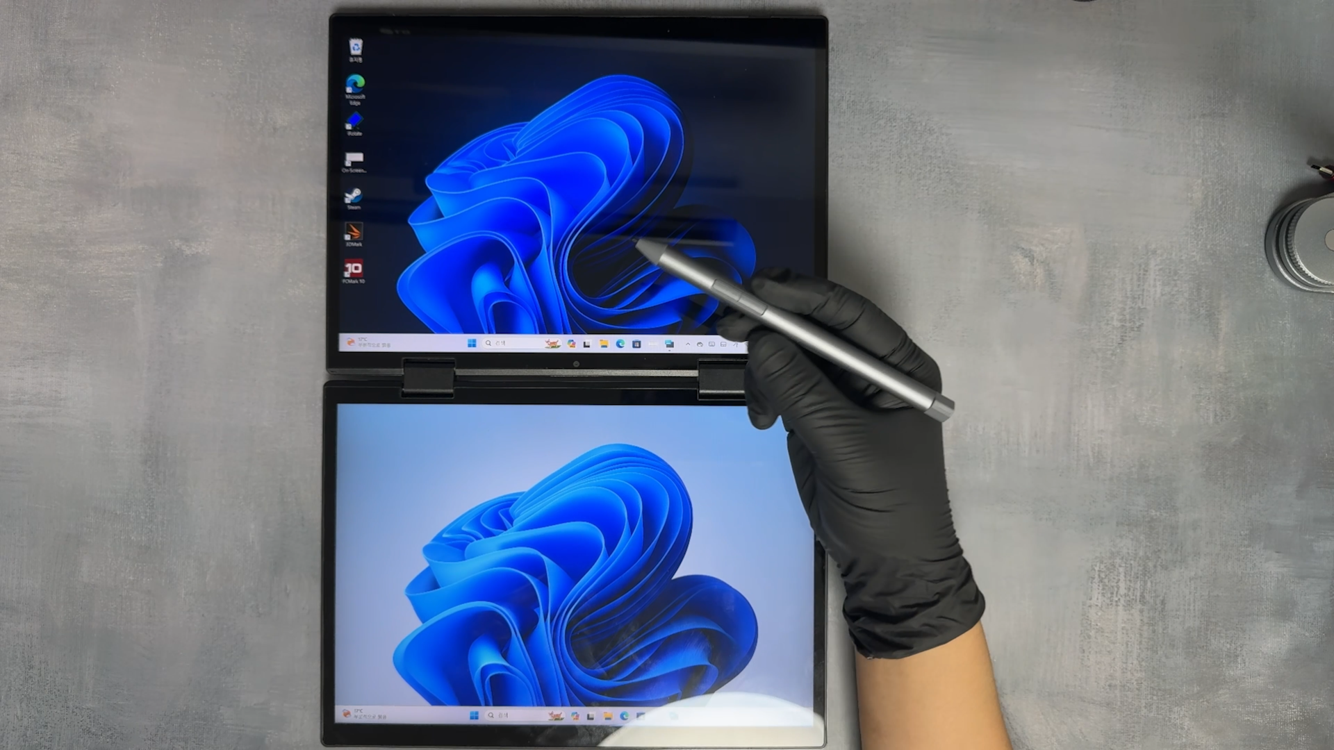 화면을 펼치면 10.5인치 IPS 듀얼 디스플레이 16:10 비율에 해상도는 FHD(1920 x 1280) 입니다.